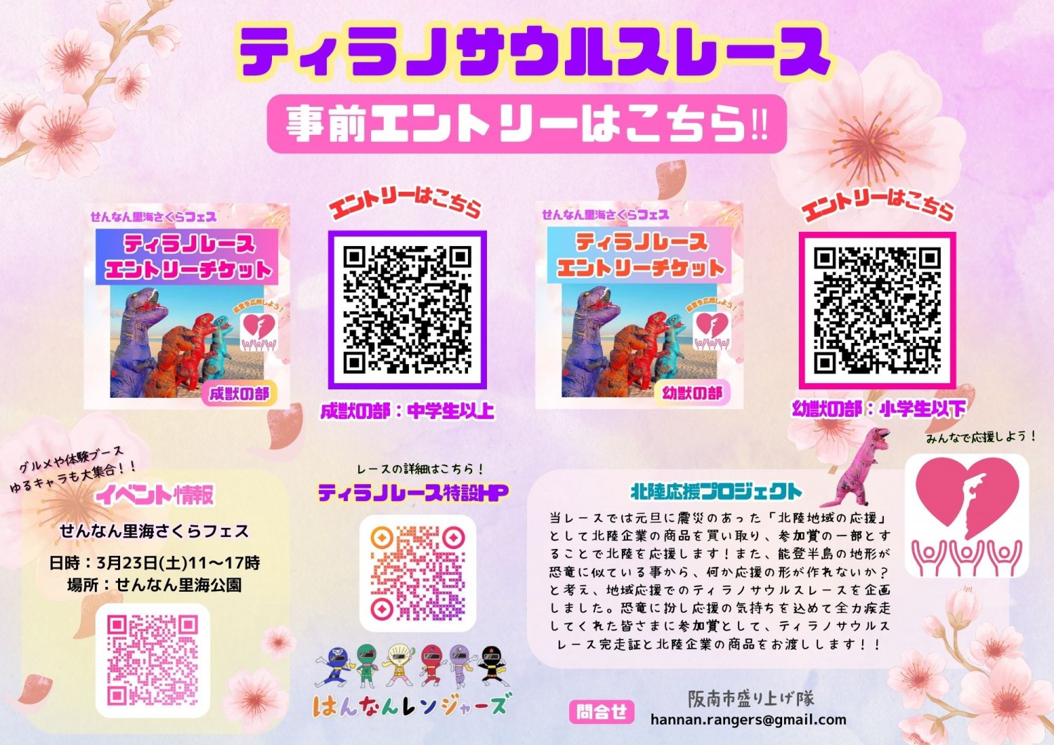 このティラノサウルスレースは、第11回せんなん里海さくらフェスのイベントとして開催します。