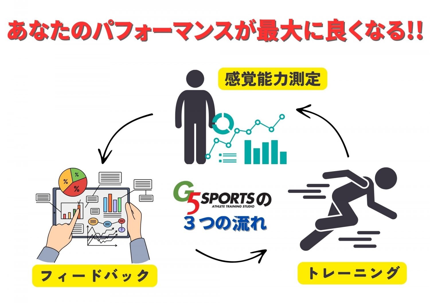【カラダの測定・フィードバック・トレーニング】の3つのメゾットで能力UP!