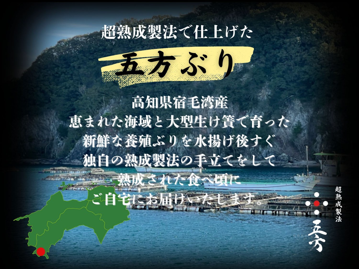 恵まれた海域 高知県宿毛湾で大型生け簀の中でストレスフリーの環境で養殖ぶりの飼育される[荒木水産株式会社]と手を組む事で