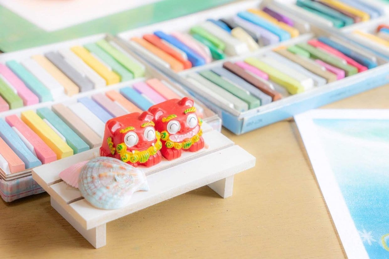 泊まる場所もプランも決めず、一人沖縄へ向かいました。そんなまさか?!の1人旅先で、で出会った方の仕事場にパステルの画材があったことが、私がパステルとの初めて出会った瞬間です。