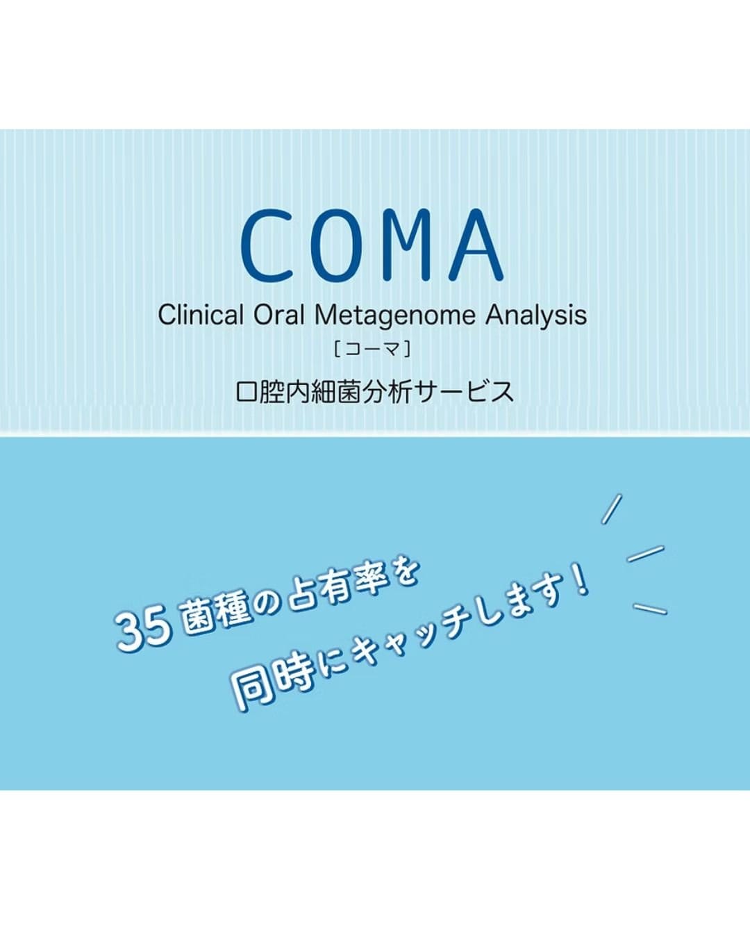 COMA(口腔内細菌検査)」は、専門の検査キットと次世代シーケンサー、独自データベースを用い、口腔内の菌叢(きんそう=菌の集まり)を可視化するサービスです。