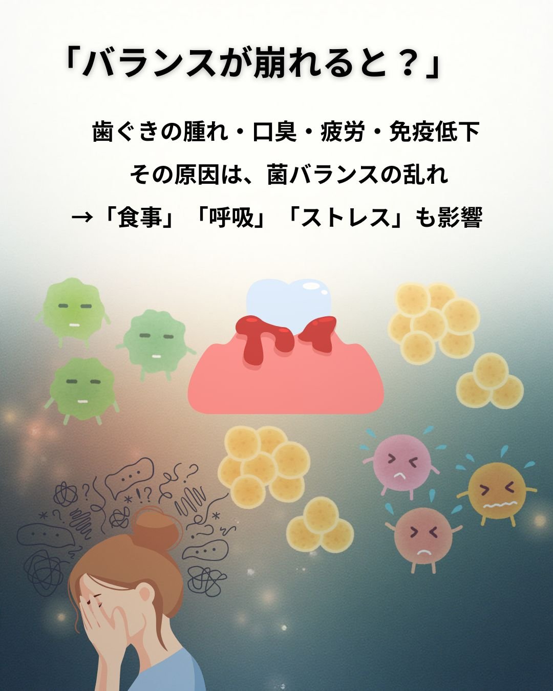 「良い菌・悪い菌のバランスが乱れると、口内環境が不安定になります」