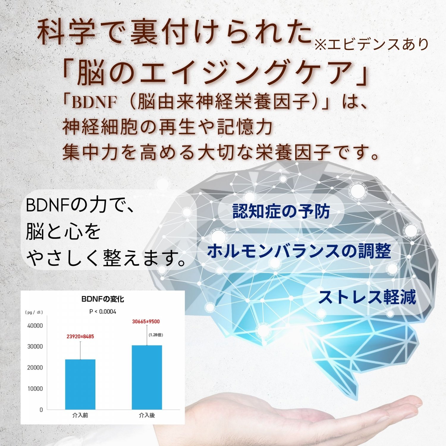 BDNFは、脳の神経細胞を育て、守り、つなぐ働きを持つホルモンで、学習・記憶・集中力・情緒の安定に欠かせません。