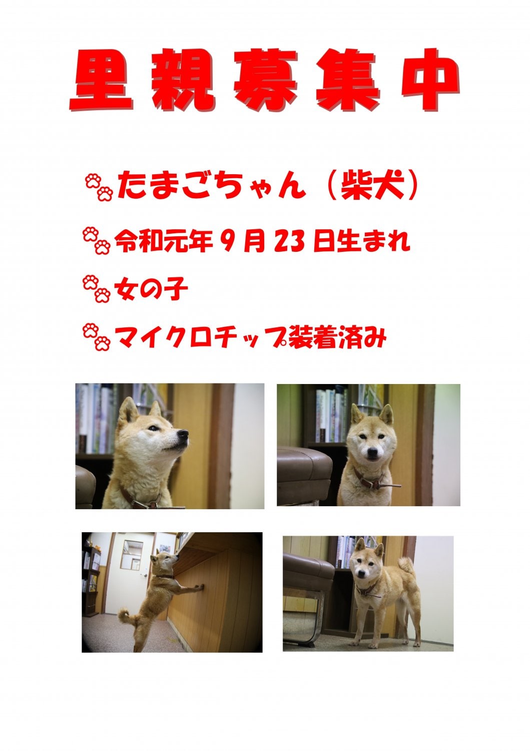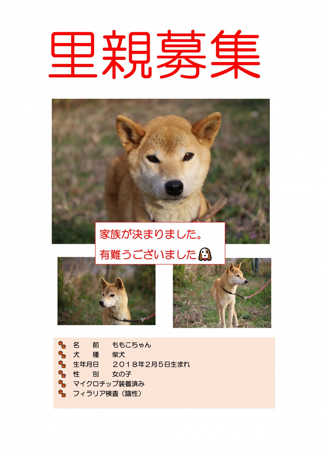 現在、里親募集中の情報はございません。募集が始まり次第掲載します。