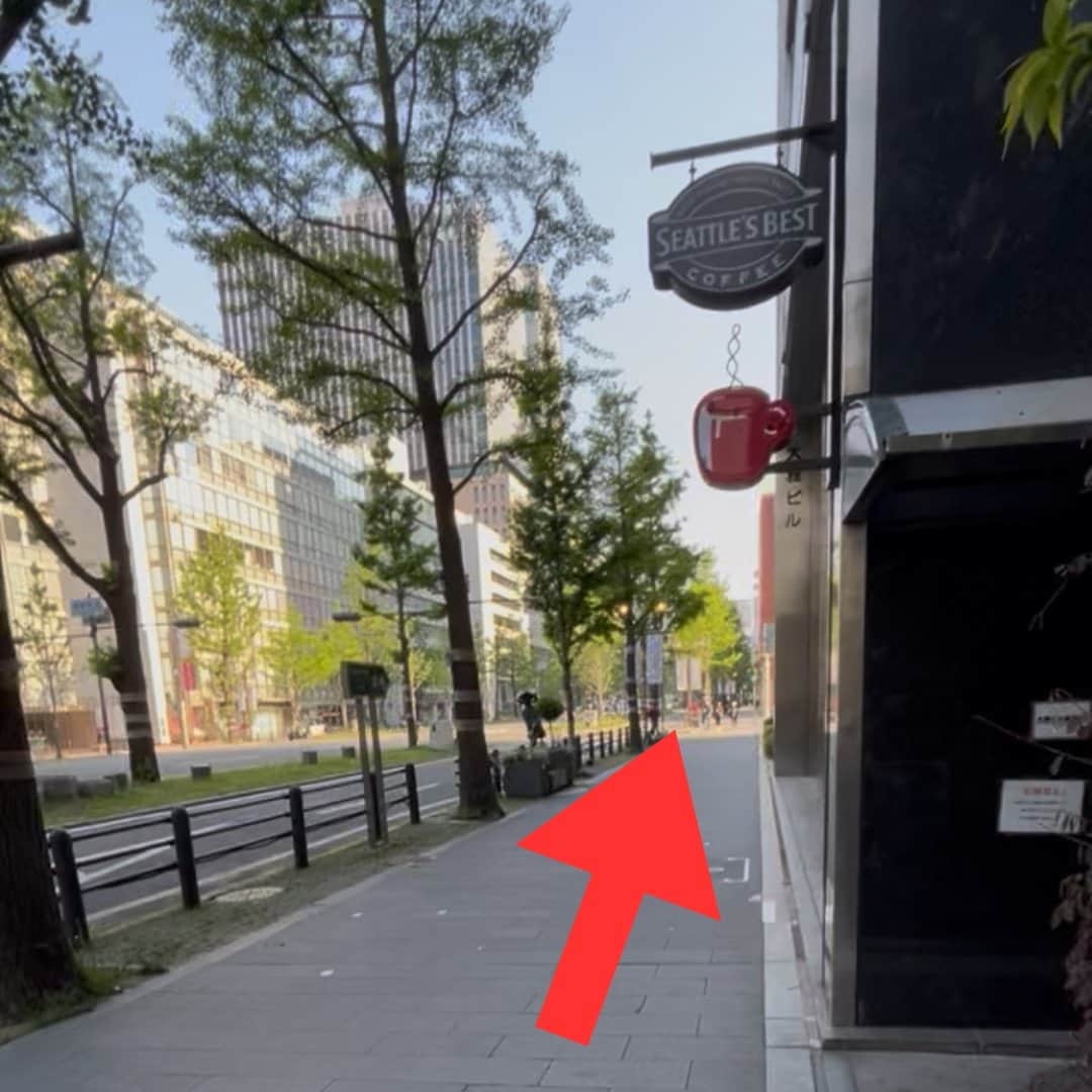このまま、まっすぐです。2つ交差点を過ぎるまで進みます。
