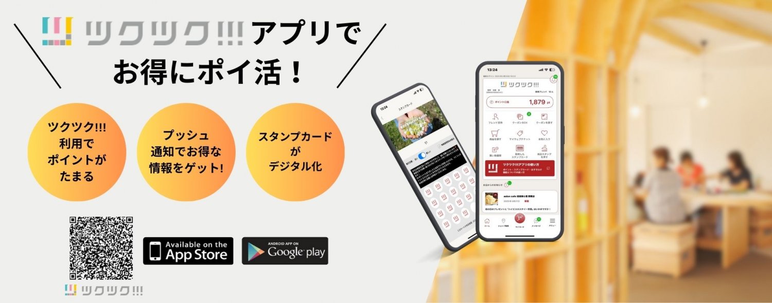 →→ アプリ加盟店に加え、全国の『ツクツク!!!ショップ』でポイントが連携できるようになる。