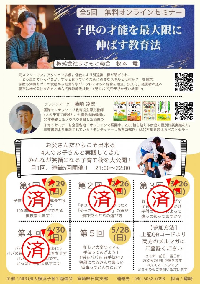 【NPO法人横浜子育て勉強会 宮崎県日向支部主催のオンライン講座】