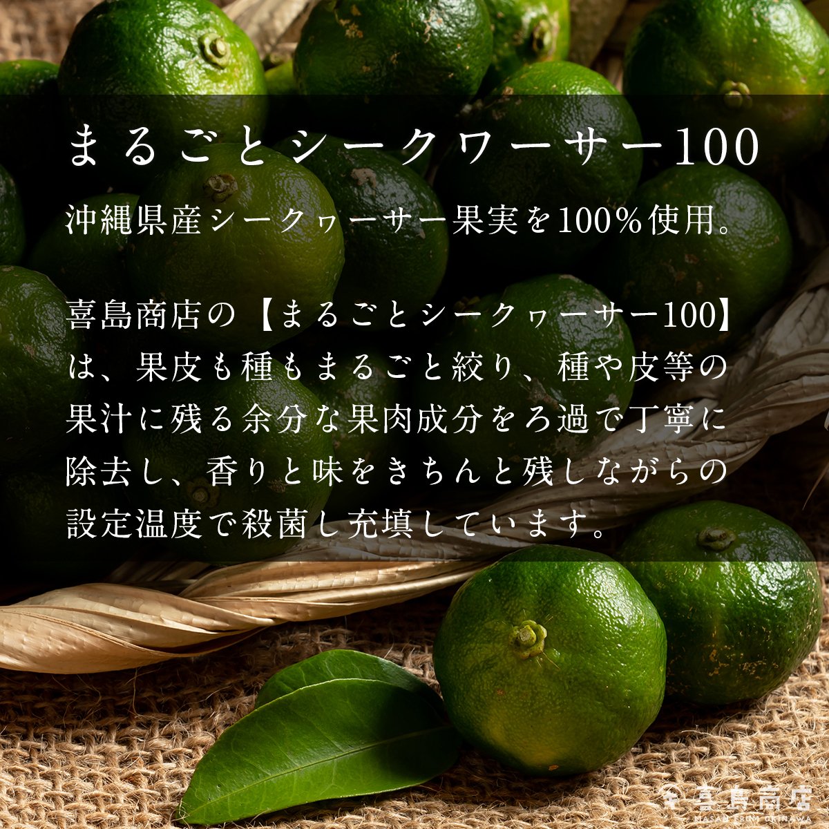 果皮も種もまるごと絞っているので、シークヮーサーの栄養すべて美味しく頂けます。