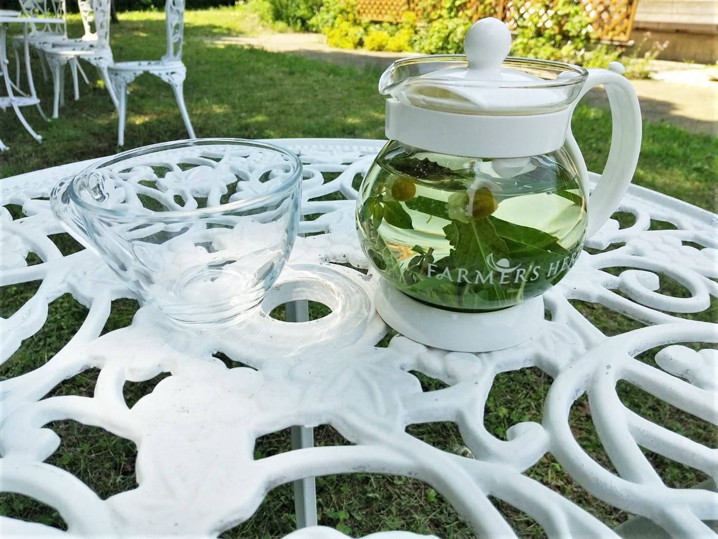 香遊生活のオリジナルティーポットで当ハーブティーをお飲みいただくと、茶葉がジャンピングしている姿がスノードームのようで、色や味の変化も愉しめて癒され、見ていると飽きないです。
