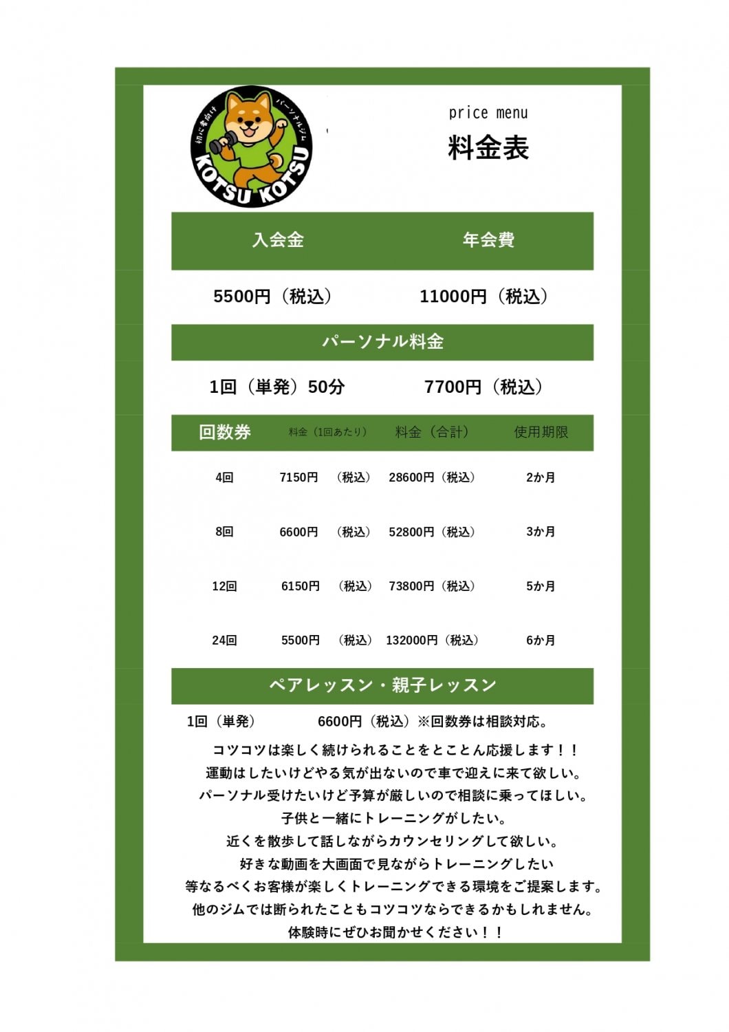 ※訪問パーソナルトレーニング、ペアトレーニング、3人以上のトレーニング等対応可能です。お気軽にご相談ください。