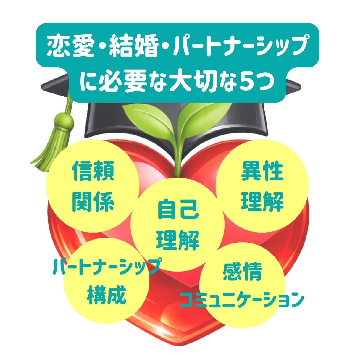 5. パートナーシップ構成〜二人で未来を創るチーム力〜「私とあなた」から「最高の一枚岩チーム」へと進化する力です。共通のビジョンを描き、協力し合って人生を運営していく技術を指します。