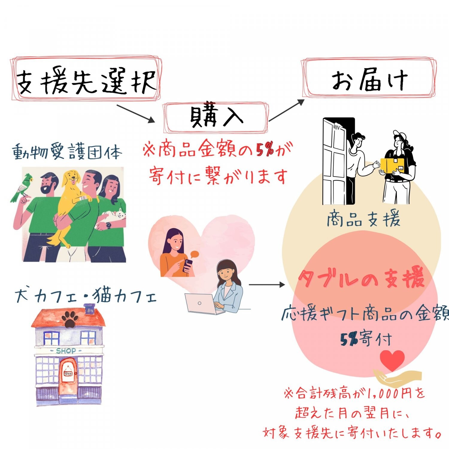 【応援ギフトMaru】では、新たなご縁が繋がるまでの間、沖縄県で暮らす保護犬・保護猫への食事や消耗品など支援する取り組みをしております。応援したい支援先へ、物資支援ギフトと応援ギフト商品の金額5%が寄付へと繋がり、支援先へは「ダブルの支援」として届けられます。