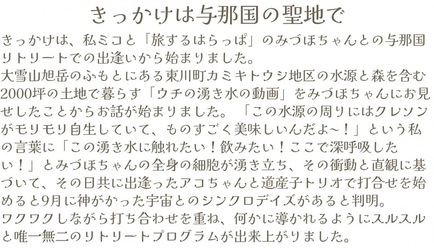 YOUさん・にっくん・ヒロくんと歩く大雪山旭岳『カムイミンタラ∞リトリート』&『YOU&にっくん・ヒロくんwithべーゼンドルファーLive』