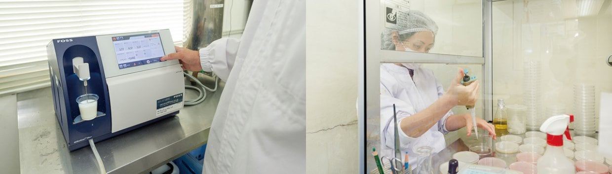 集乳した生乳を抗生物質や細菌、アルコール検査などあらゆる角度から検査します。