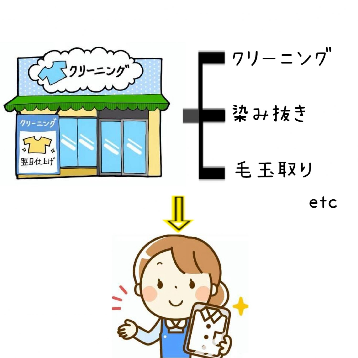受け取る方に気持ち良く着て頂く為に、全てのお洋服をクリーニング屋さんに持っていきます。クリーニングから必要に応じて染み抜きや毛玉取りなどを依頼し、思い出の詰まった愛着のあるお洋服を新品同様にアップグレードし新しい命を吹き込んでいきます。
