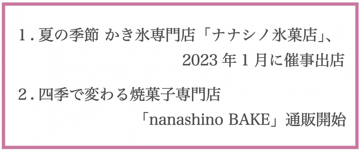 四季で変わるスイーツ専門店「ナナシノ」の2期目のチャレンジについては、ご時世により開催時期が変更・中止になる場合がございます。