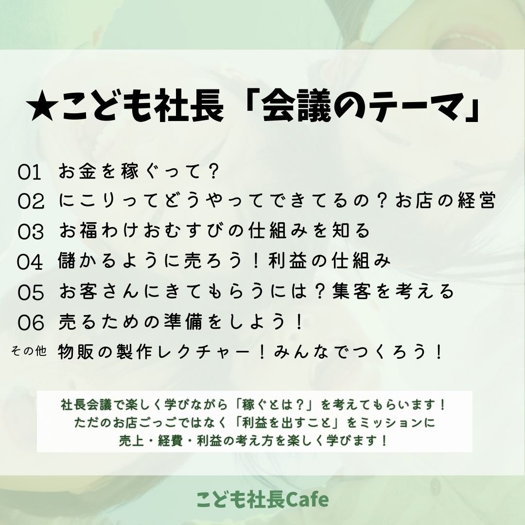 こども社長Cafeは、おむすびカフェにこり店主 森脇ゆりの友人であります