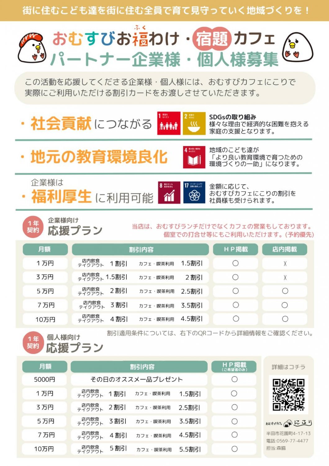 おむすびカフェにこり店舗内での宿題カフェ、お福わけおむすびの活動は2025年12月末にて終了しました。