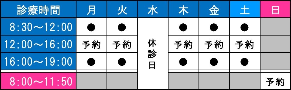 ※休診日は水曜日、祝日、日曜日午後。