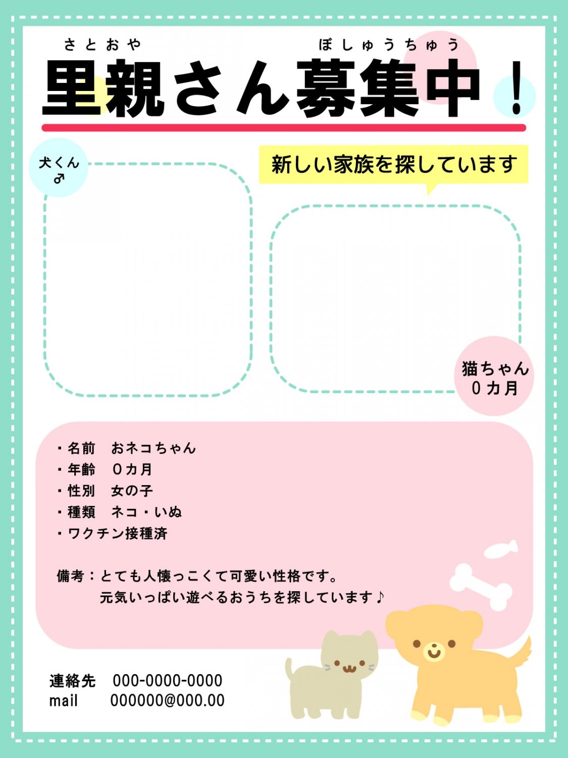 里親さん募集のお知らせ