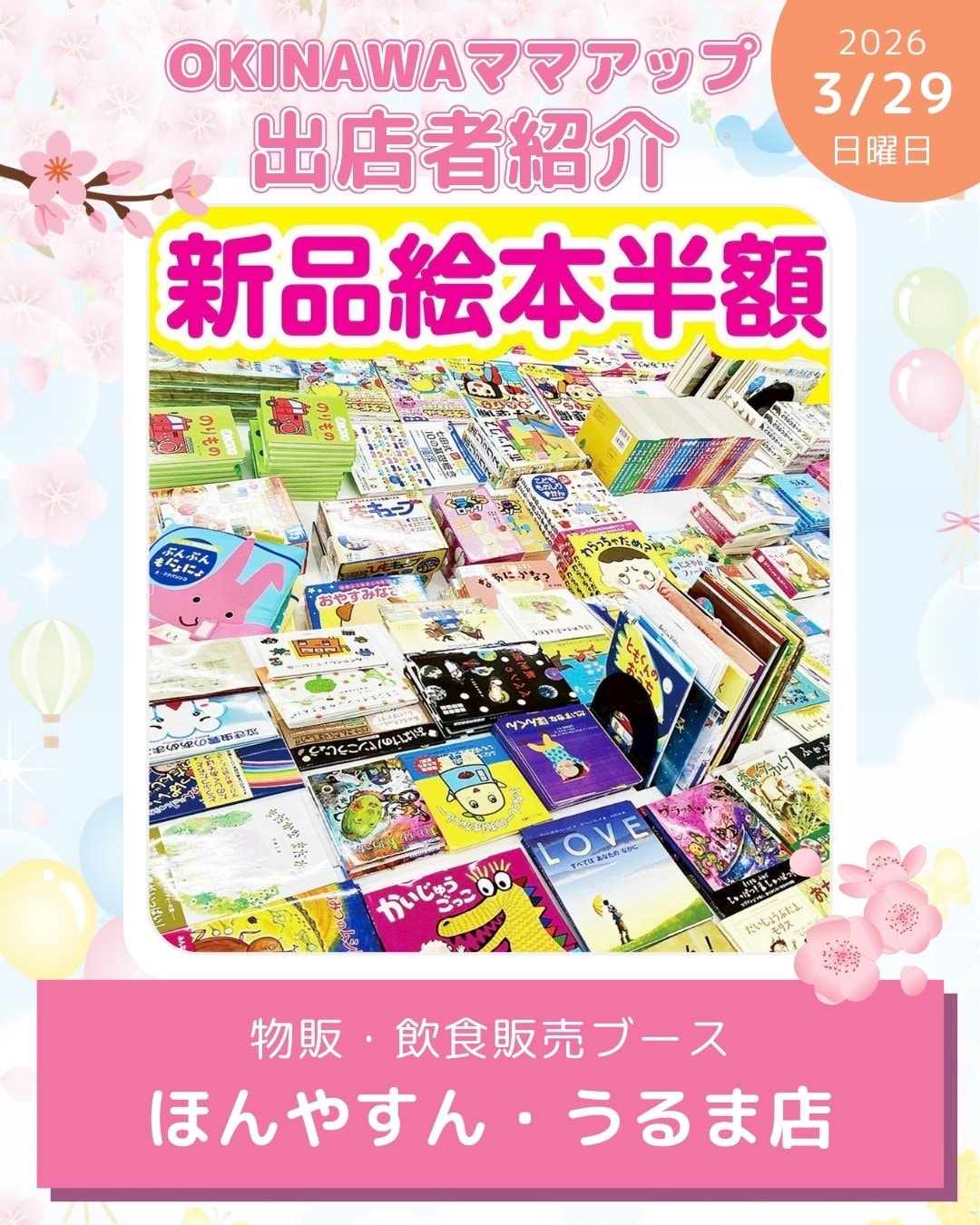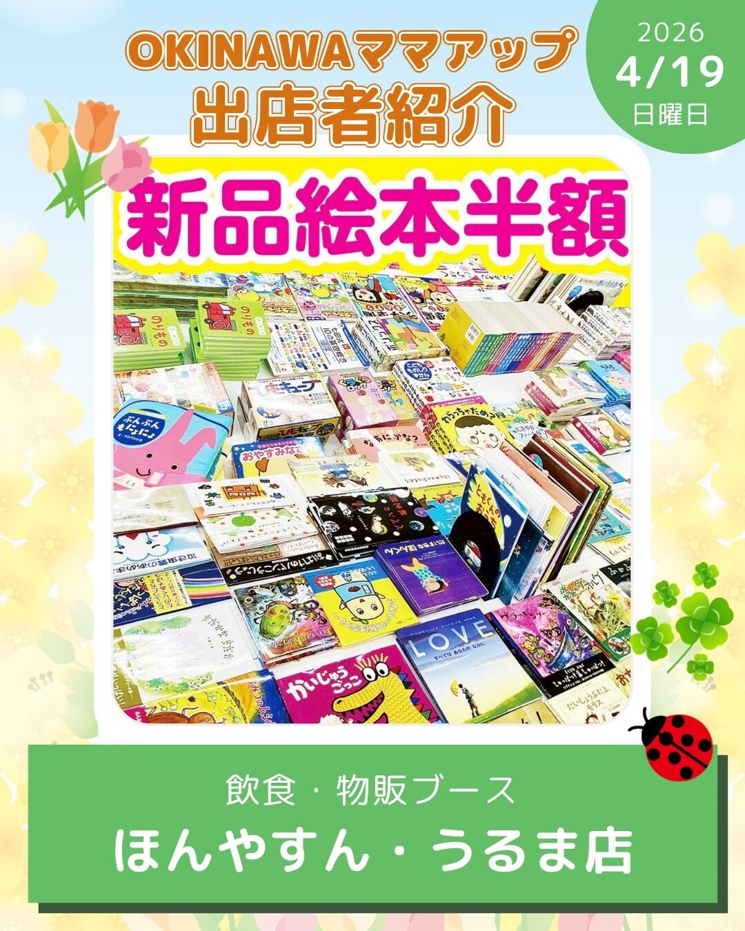 新品の絵本が“半額”で購入できる絵本屋さん『ほんやすん・うるま店』さんが出店します☺️