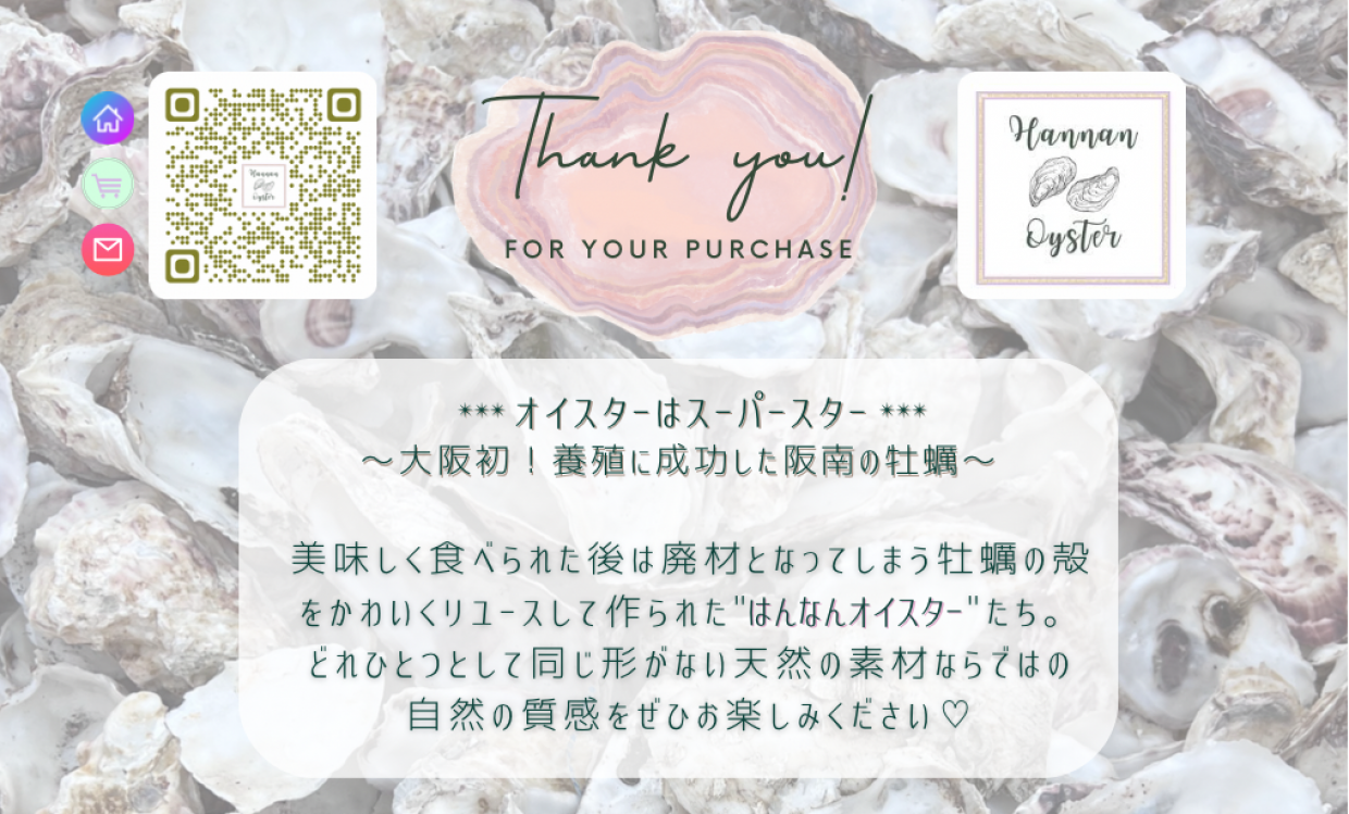 ※牡蠣殻はプレーンです。アートをしたりオブジェとしてご使用ください。