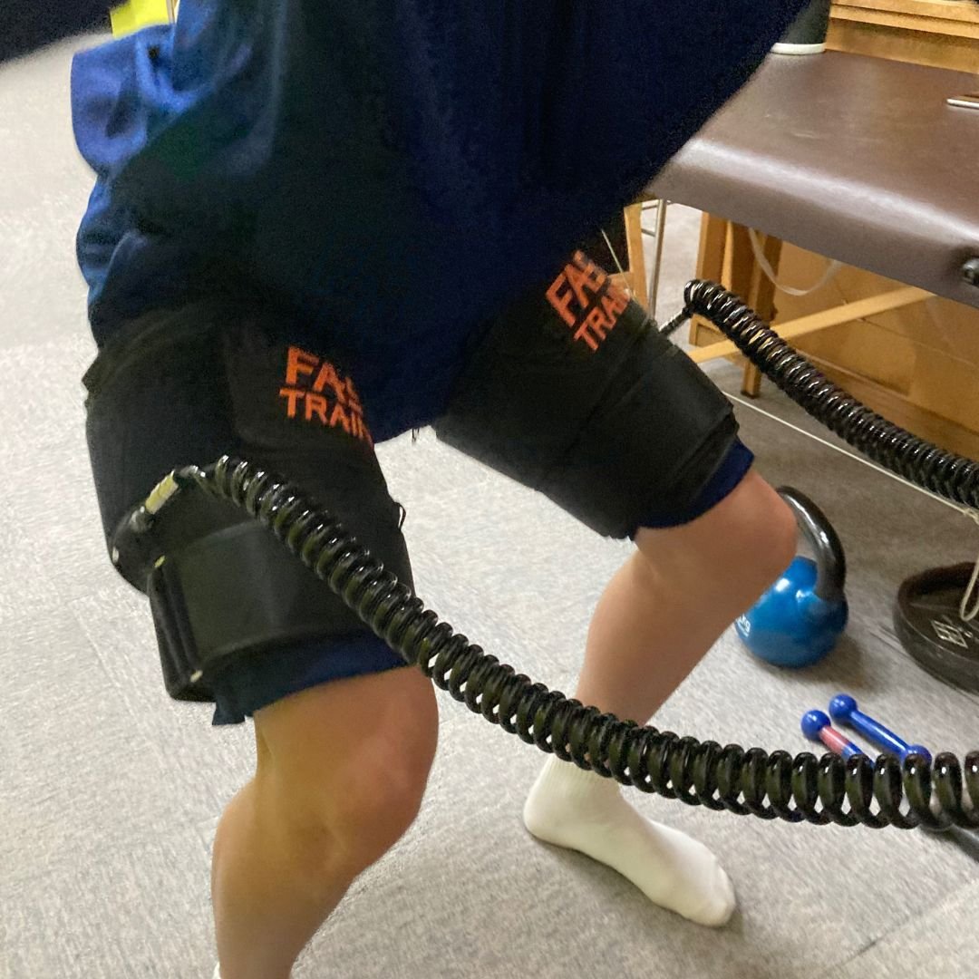 ファストトレーナーは脚にバンドを巻いて筋肉を圧迫し、
