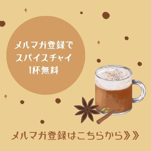 事前にメルマガ登録していただくと、スパイスチャイ1杯無料でプレゼントいたします!