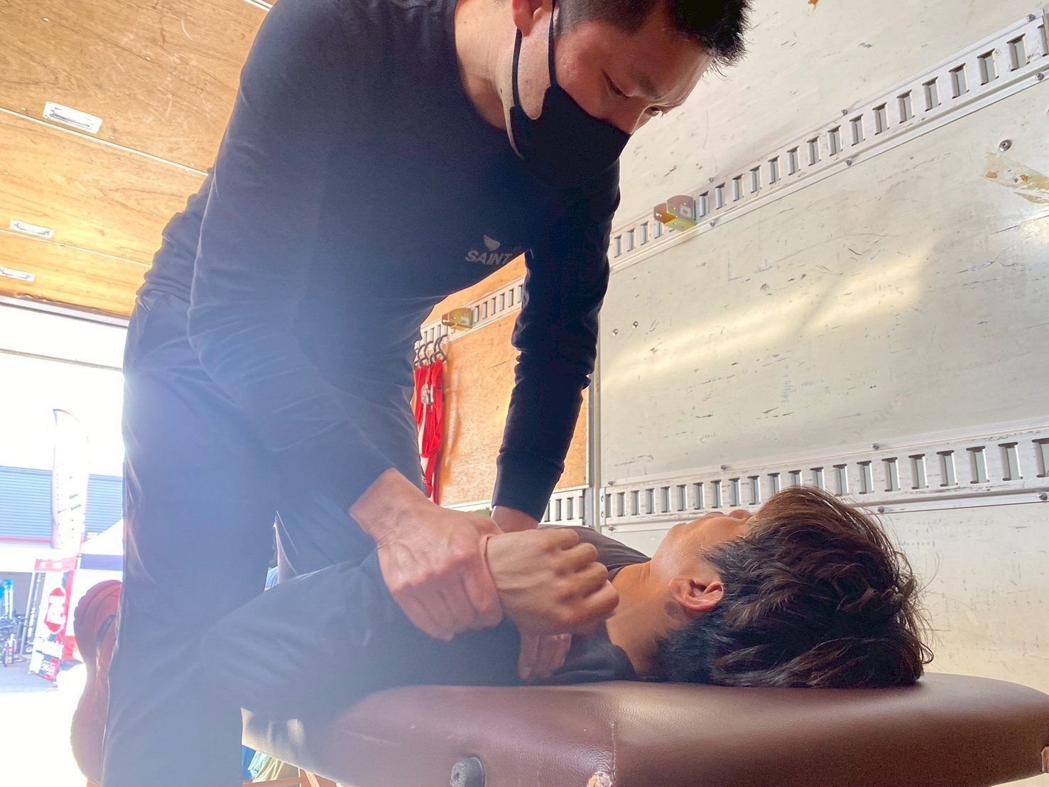 中冨選手へ、カイロプラクティックができることをトップレーサーを通して伝えたいと想いを打ち明けだところ、快くトレーナーとしての役割を引き受けさせていただけることとなりました。