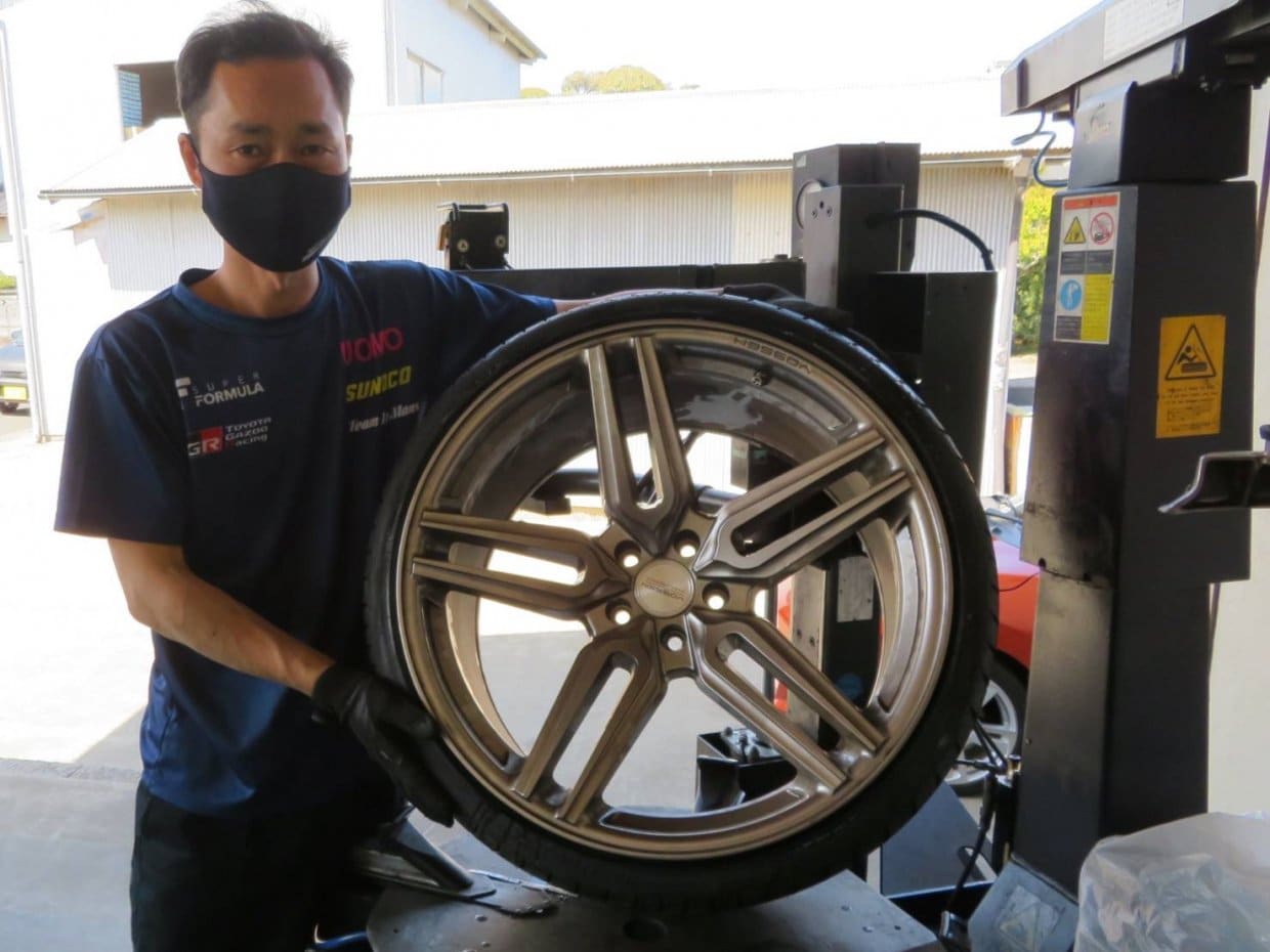スーパーカーサイズ、F1サイズのタイヤまで交換可能。