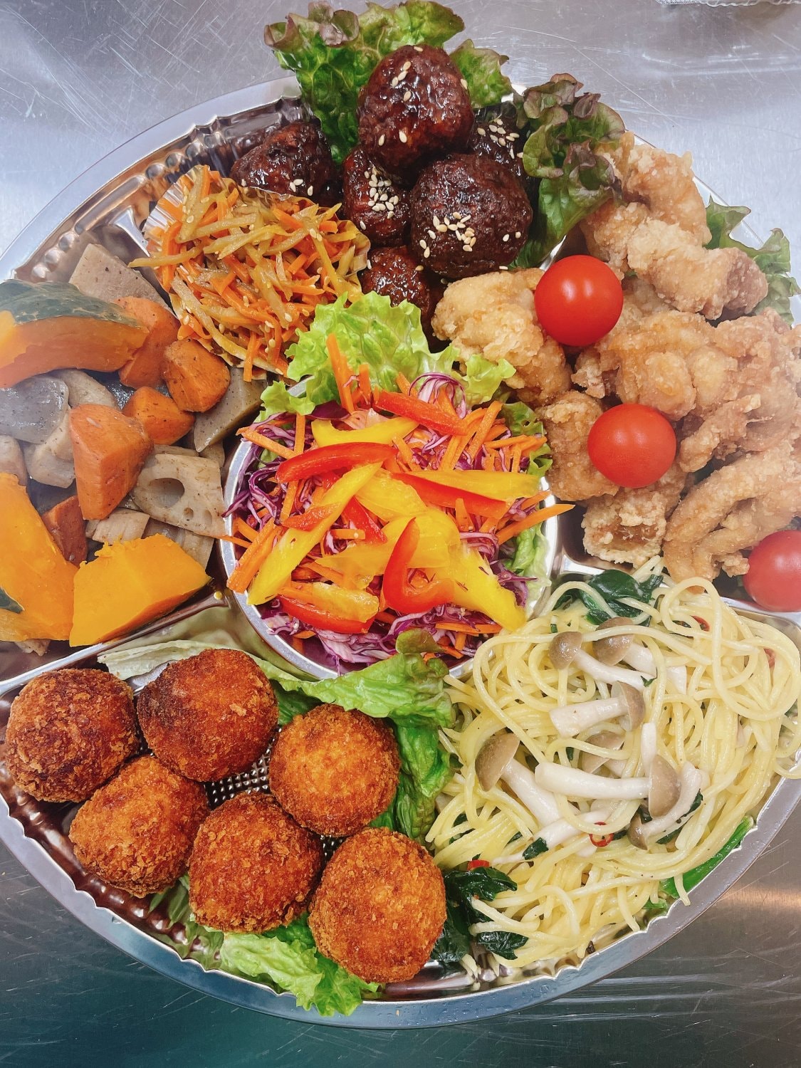 例:煮物 からあげ 手作りコロッケ スパゲティ 肉団子 サラダ 5000円