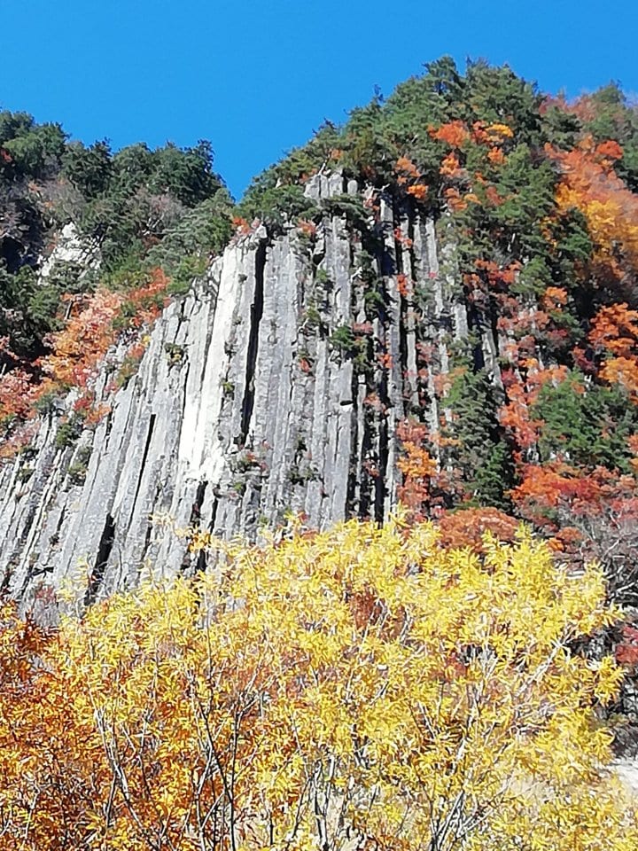 布の反物を上から晒したようなところから布岩と呼ばれる柱状節理です。