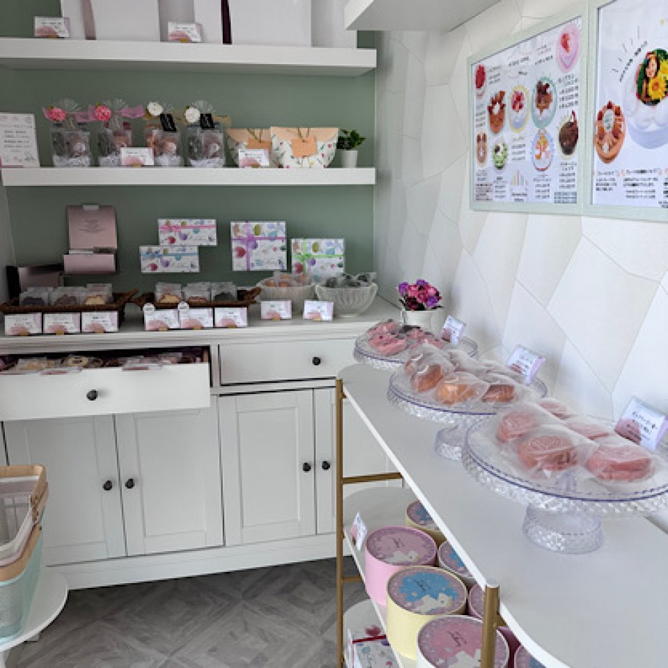白い外観にかわいい怪獣??店内も可愛くてワクワクするようなお店です。