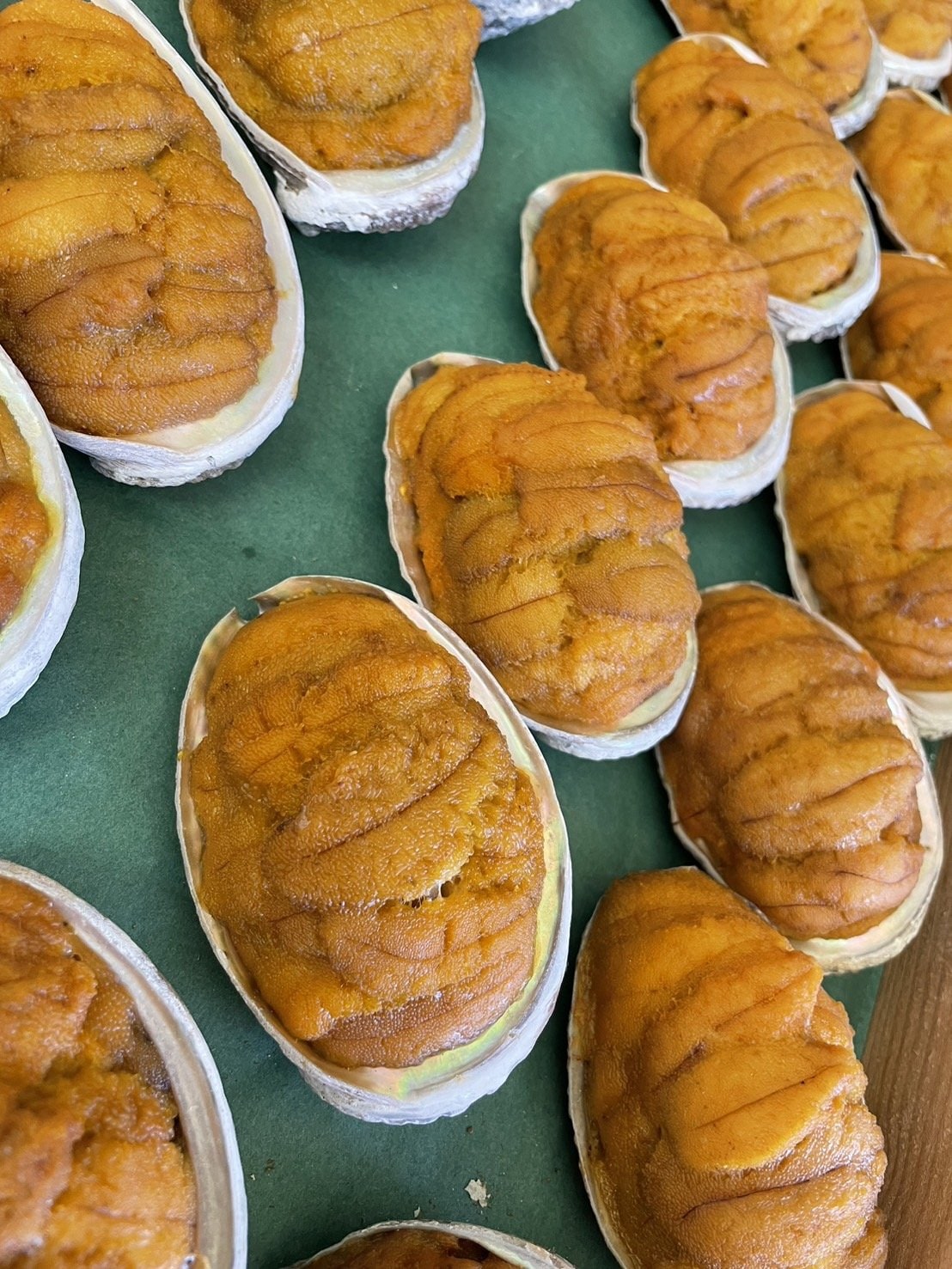 夏はウニの殻をむいて生うにをきれいに取り出す体験や、アワビの殻の上に生うにを並べて焼き上げる焼きうにを作る体験をすることができます。