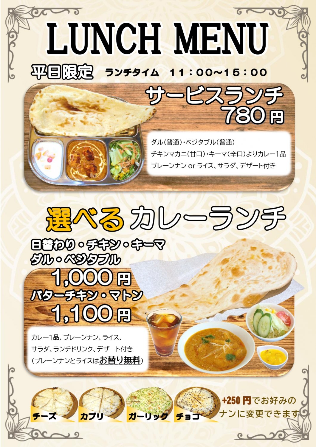 ナンの種類も変えられる