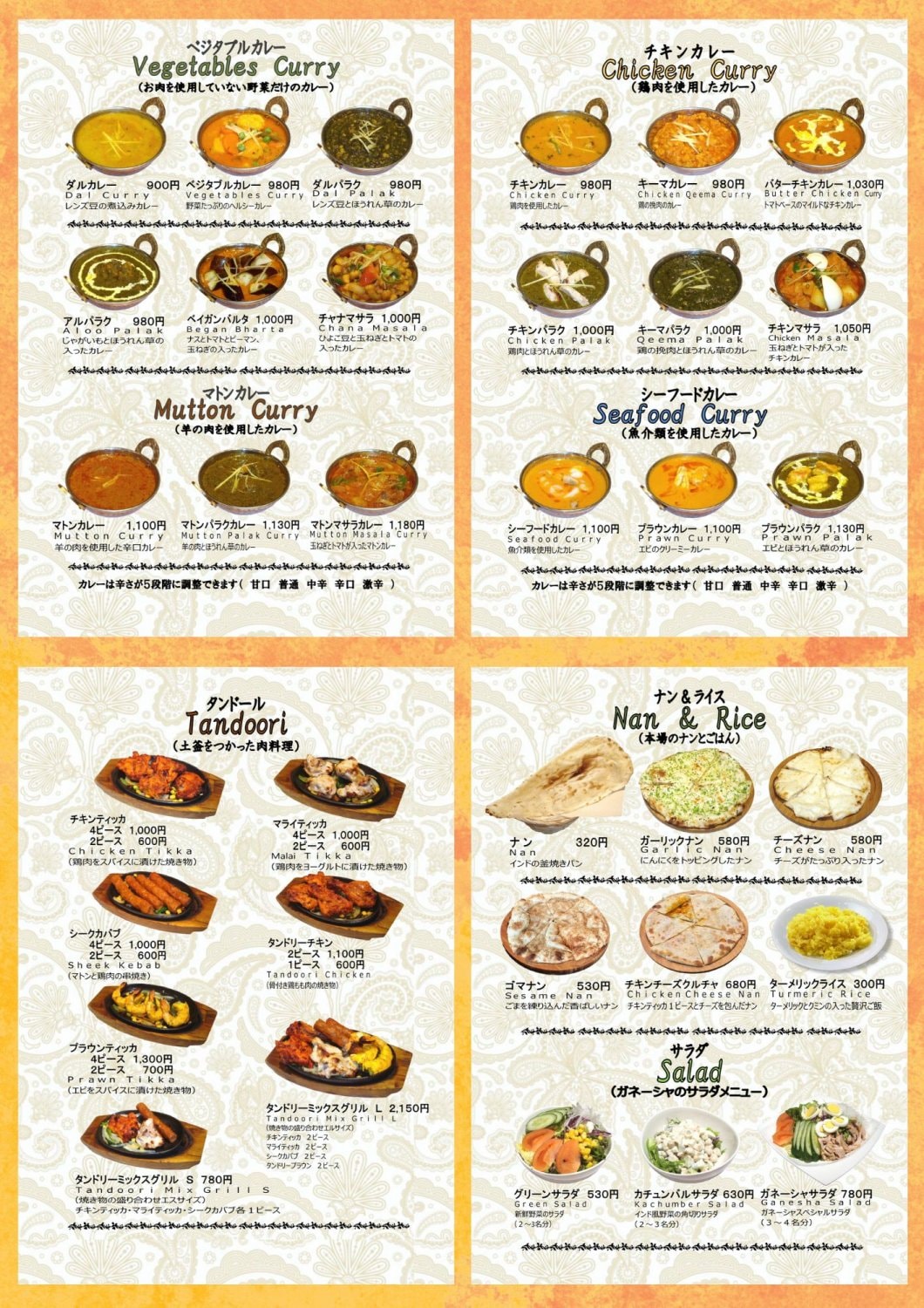 カレーの種類や辛さも選べて