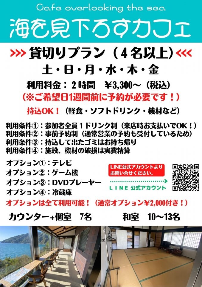 海を見下ろすカフェで現在利用できるサービスをご紹介いたします。