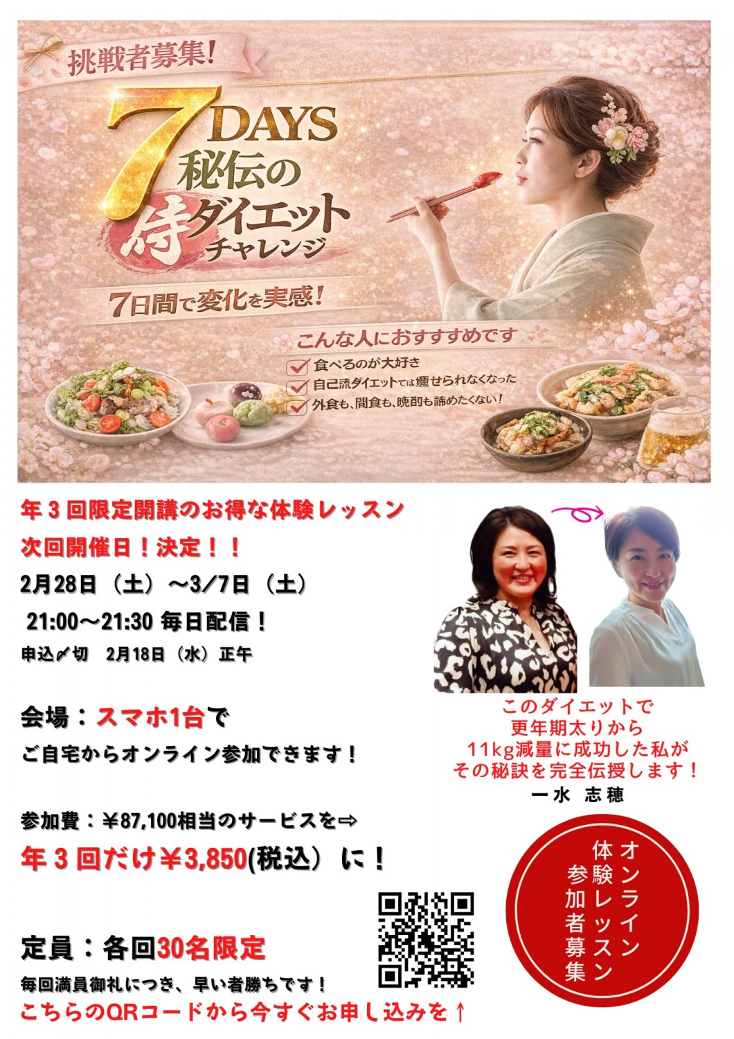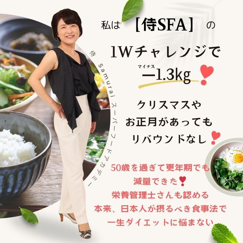 外食も、間食もOKの日本人の身体に合うやさしい和食ダイエットで理想の体重を手に入れ、いつか着てみたいと思っている服を着られる日を実現させて欲しいと思います。