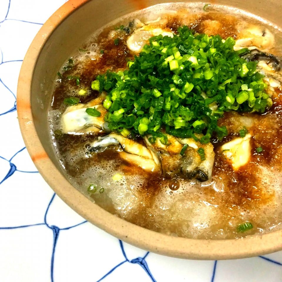 きれいな水をざるに入れ、その中に牡蠣を入れてゆっくりかき回します。