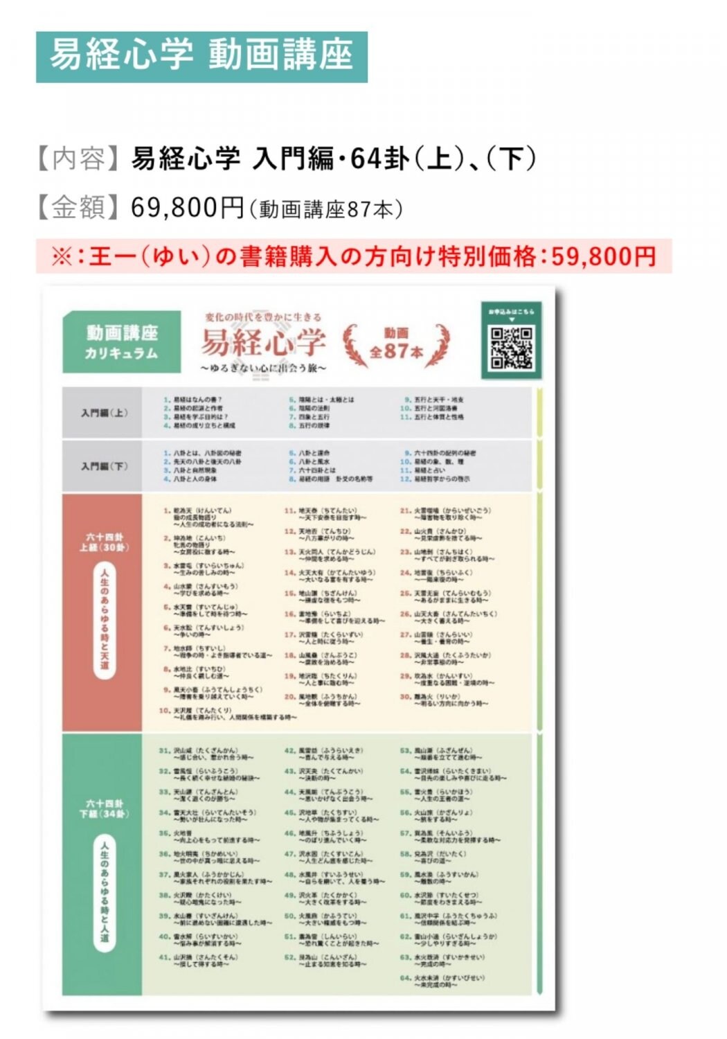 易経では、人生のあらゆる場面、時、状況を64通りのシチュエーションで、どうしたら自然の「道」から外れないで、より実りが多い人生を過ごすか、その本質を教えてくれます。