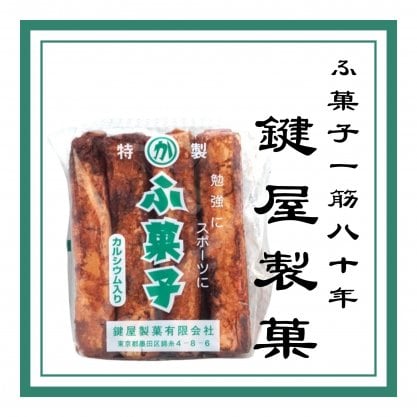 ふ菓子一筋八十年、錦糸町鍵屋製菓有限会社です。本家老舗の元祖特製ふ菓子!創業から変わらない味と形!サクッと軽くてとっても美味しいほどよい甘さで、何本でも食べれちゃう鍵屋製菓のふ菓子は、創業から変わらない味と形を守り続けています。他社とは違い、本家出来たてふ菓子を工場直送します。伝統の味を守り抜いた無添加、安心な駄菓子であるふ菓子を心を込めてお届け!食べ応えのあるロングタイプで、麩の面積が大きい ので、ふんわりサクサクの食感を思う存分お楽しみいただけます。