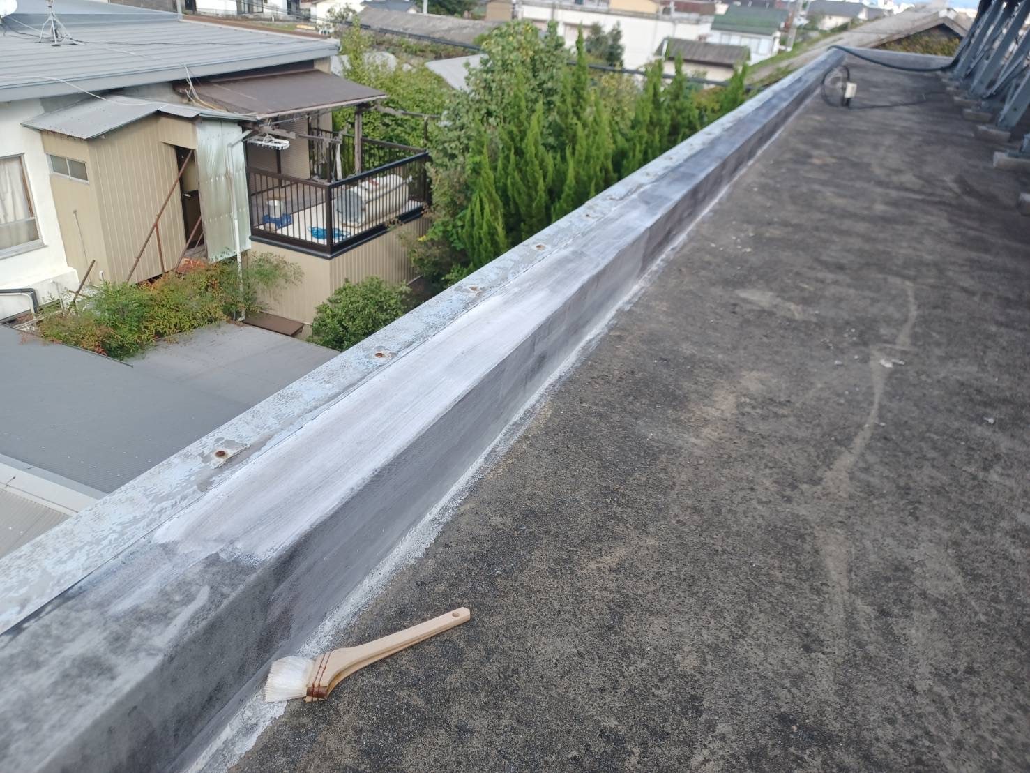 先ずは笠木部分の既存ゴムシートに水性エポキシ樹脂プライマーを塗布しました。