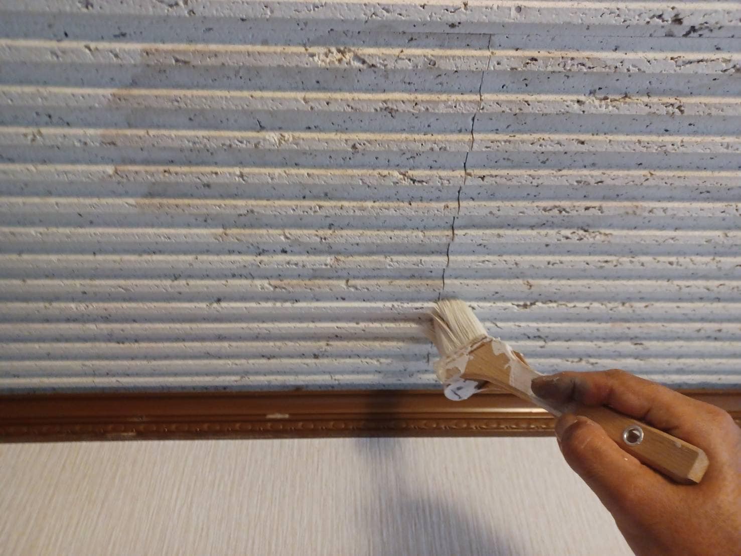 動きがあり割れている亀裂は表面にモルタルで補修したり、コーキングを打っても数ミリ程度の厚みしか付きませんので簡単に割れます。