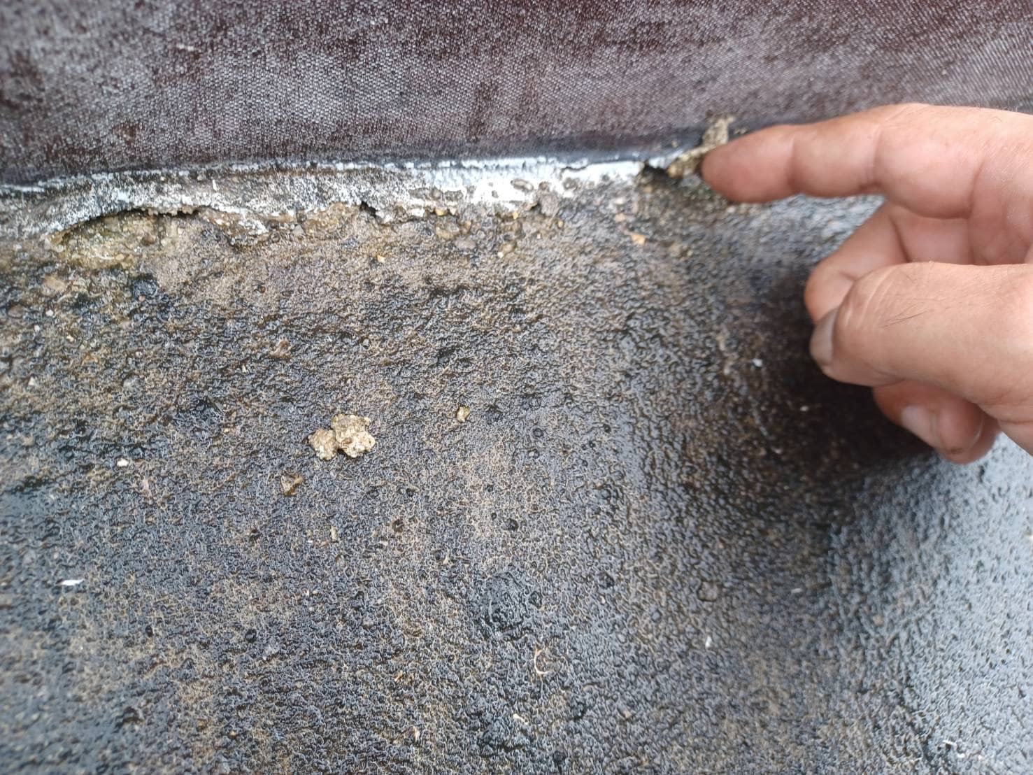 大きな亀裂が軽く10箇所以上ありましたので、確かに亀裂からは浸水はしていると考えられましたが、雨漏りの原因はこのまだ下にあると調査を続けました。