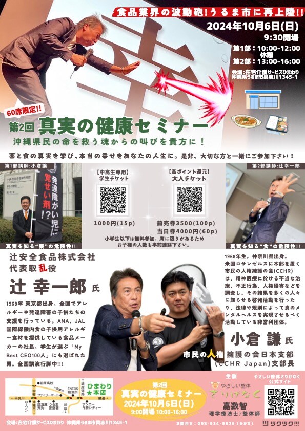 10月6日(日)うるま市にて『真実の健康セミナー2』開催!!!