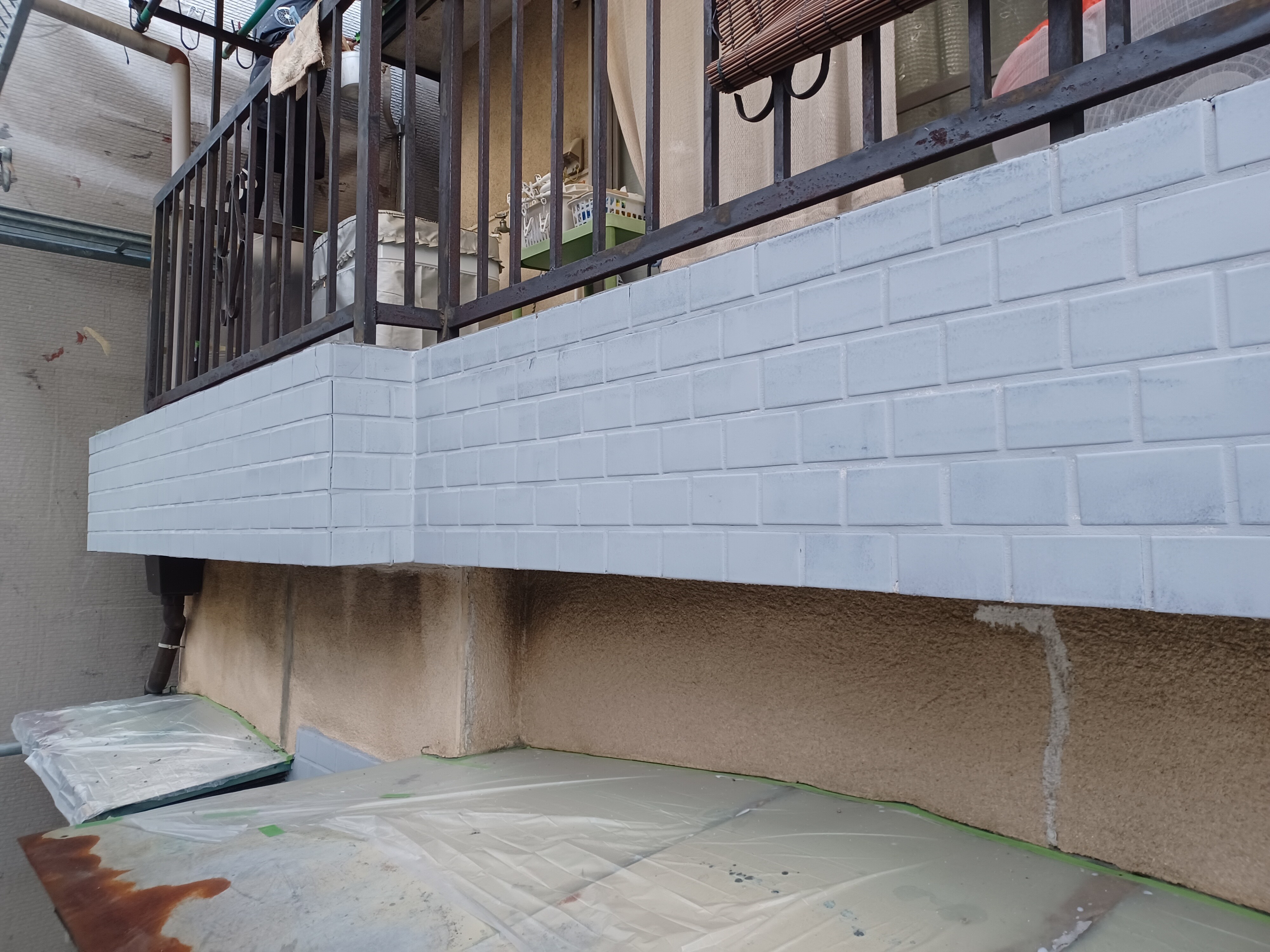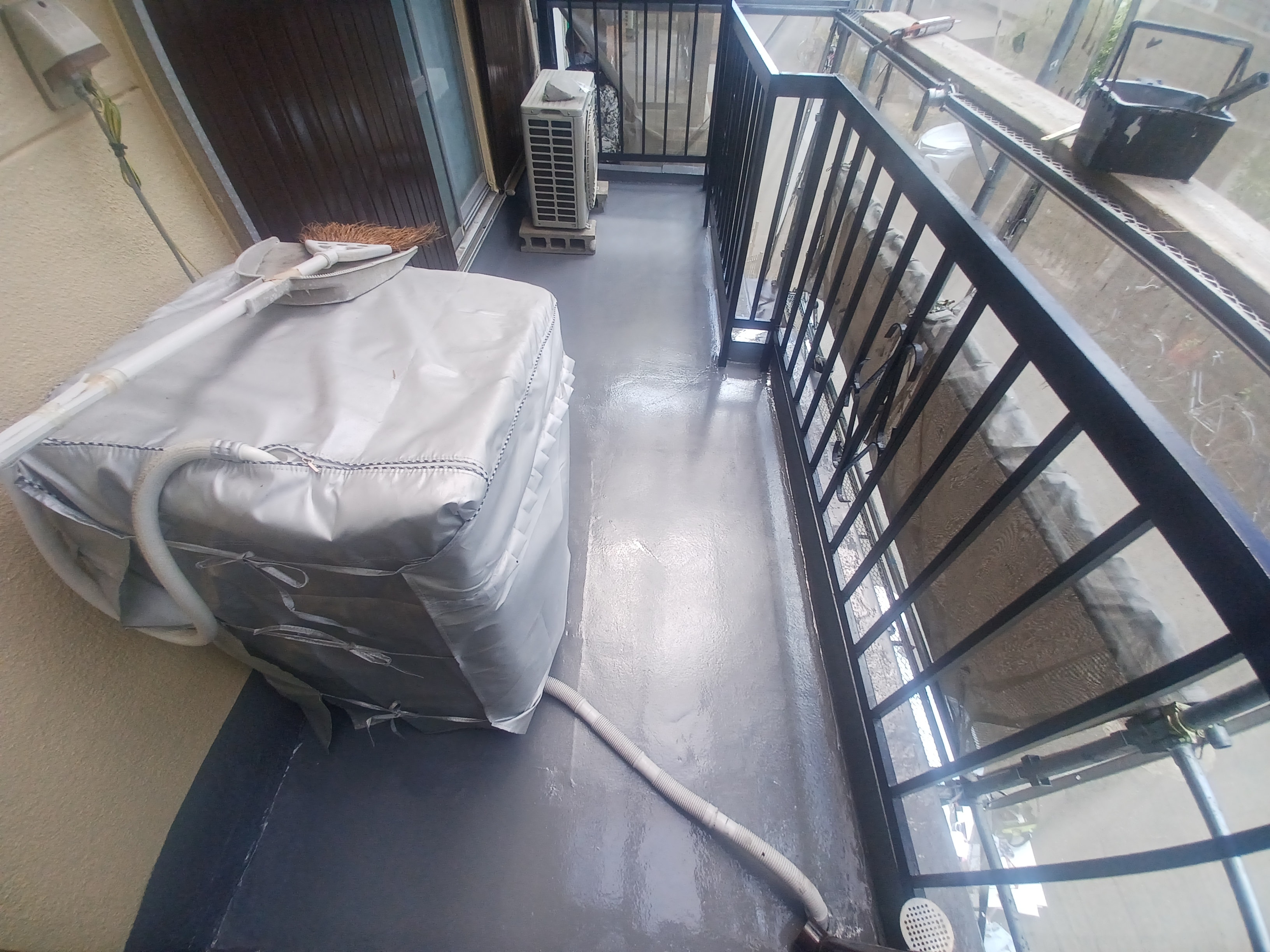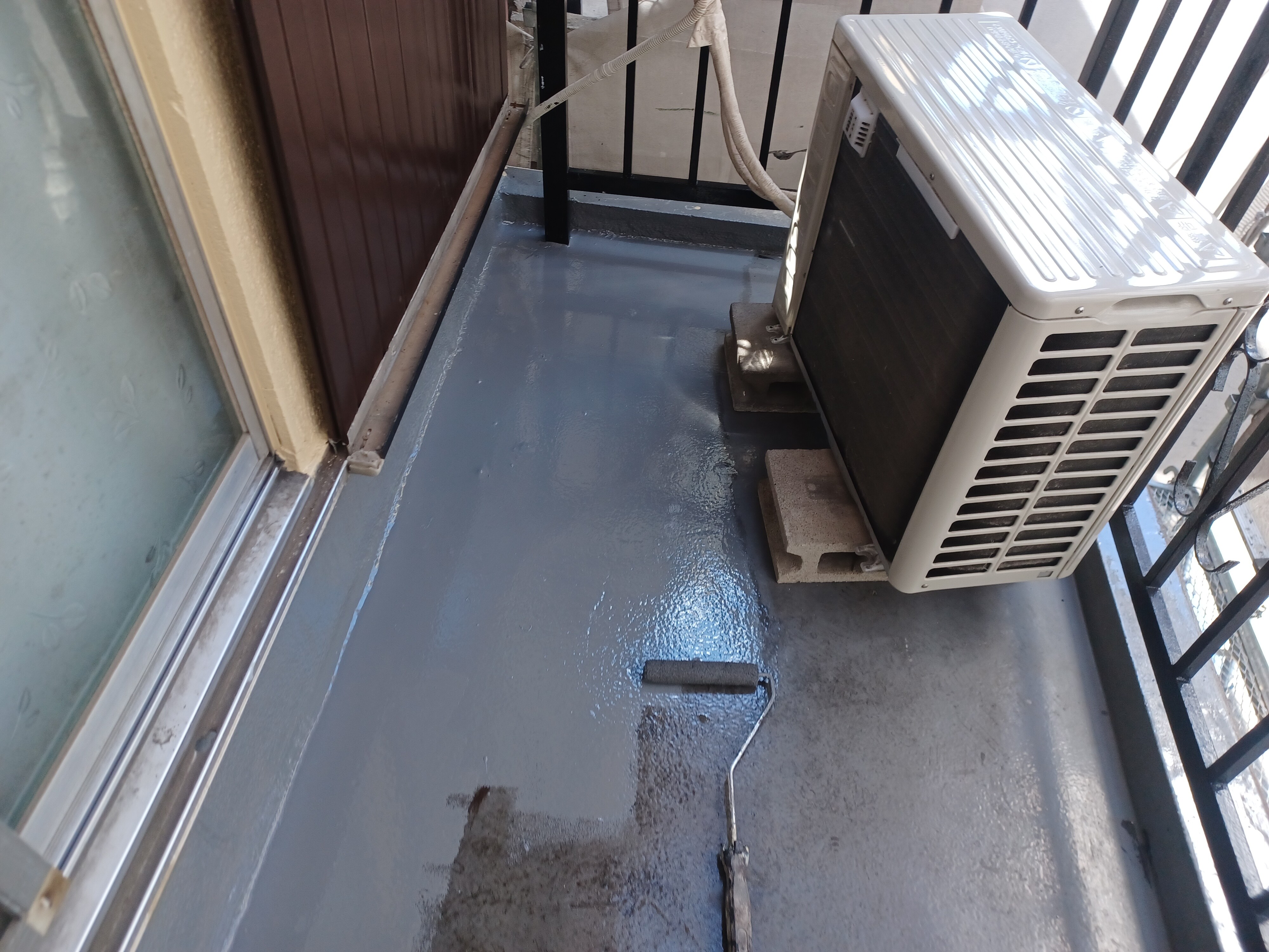 ベランダは数年前にウレタン塗膜防水をされていましたので、補修後にトップコートを塗らせていただきました。
