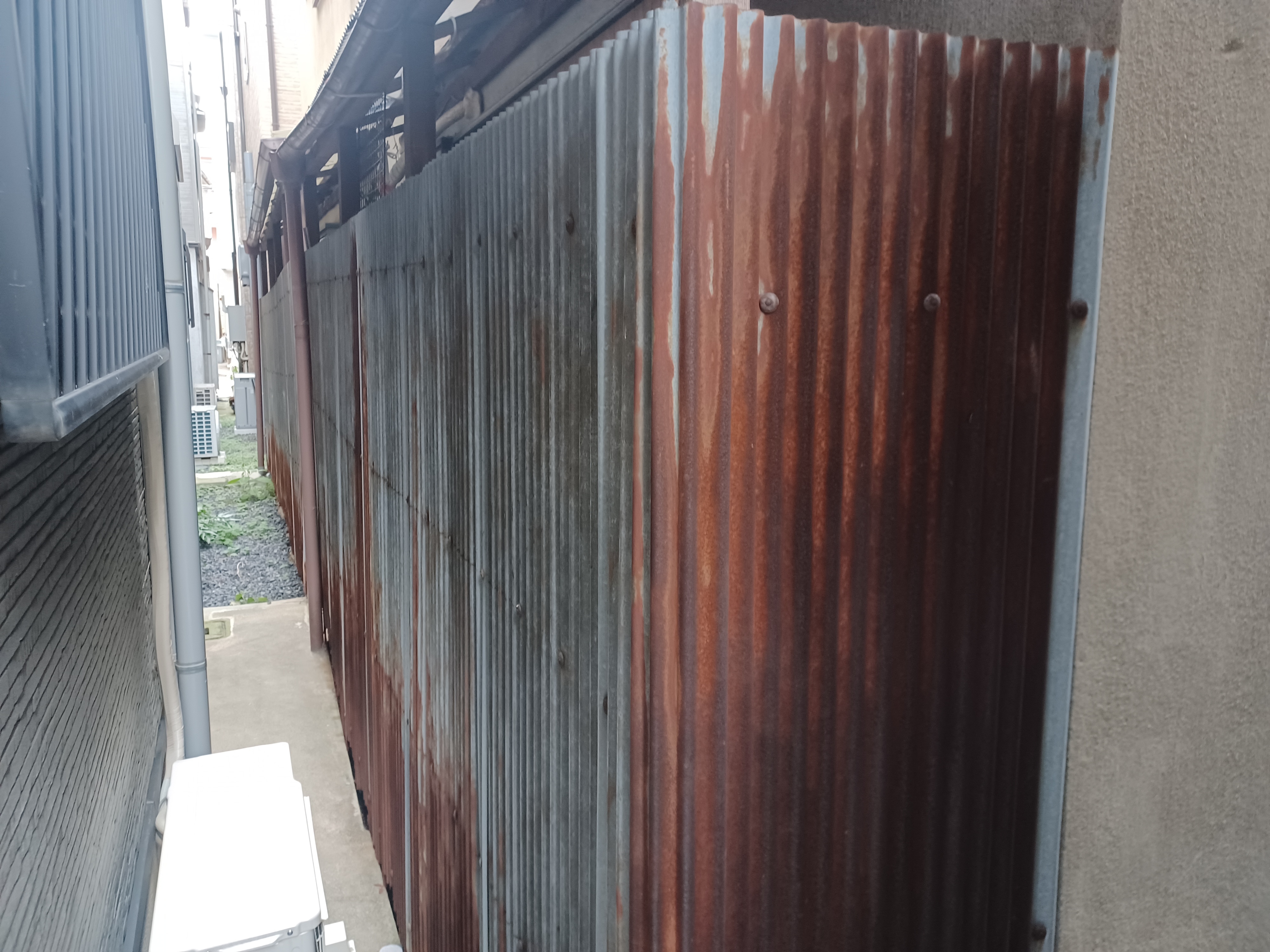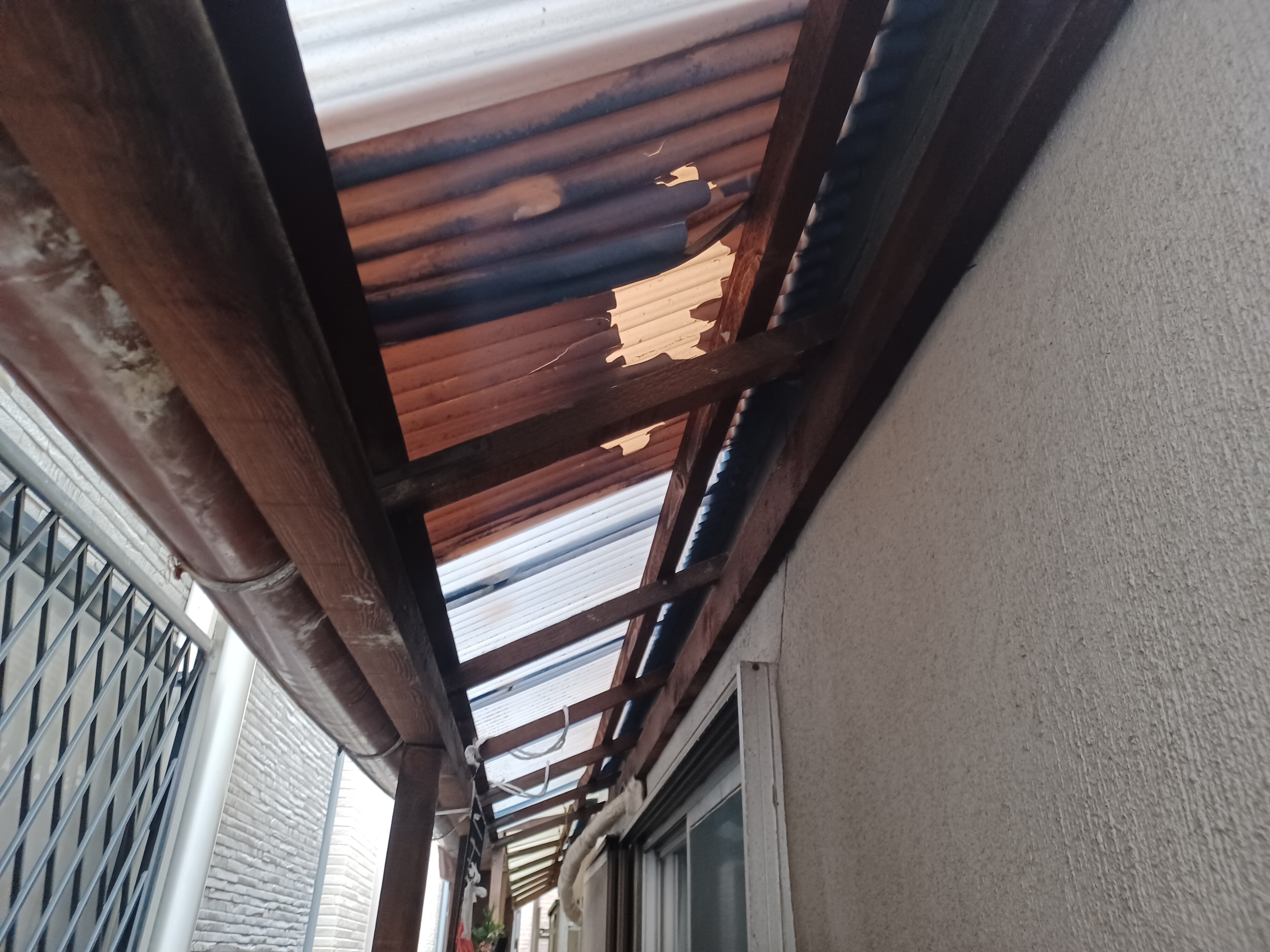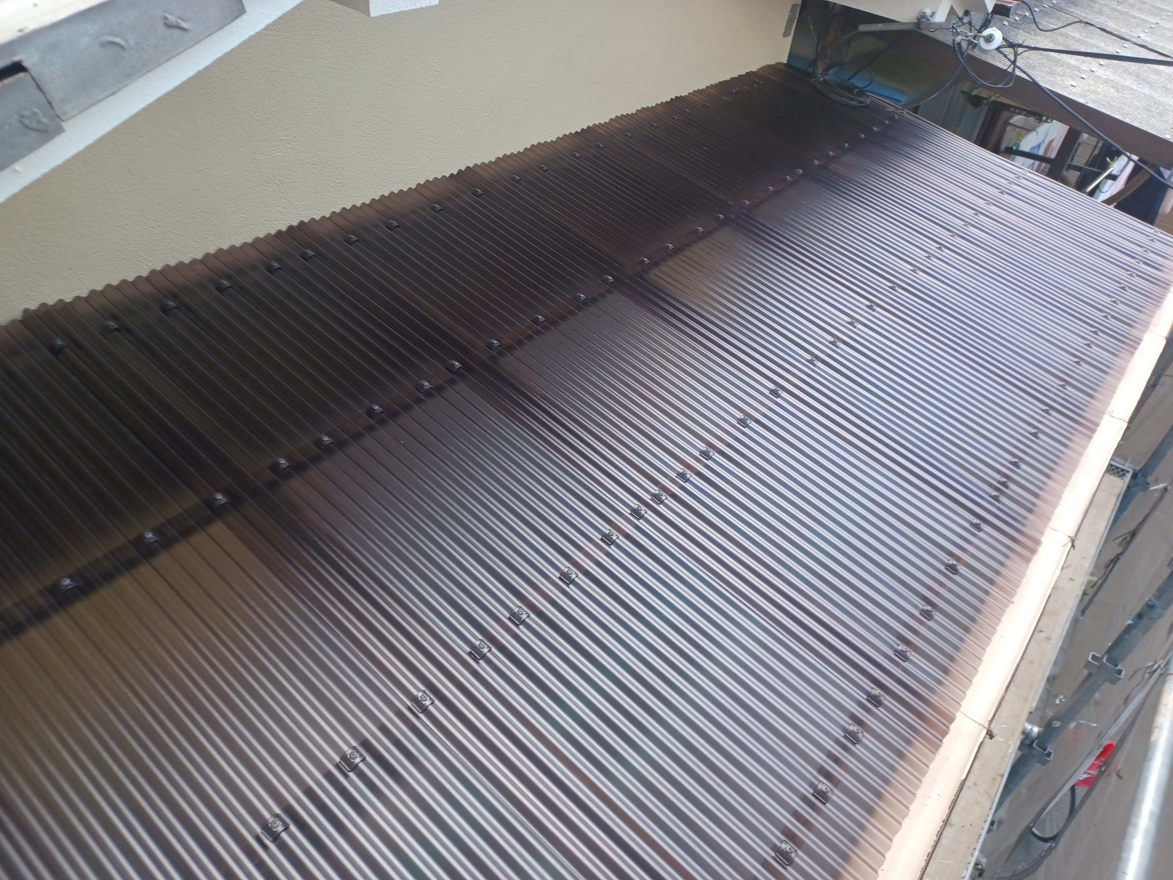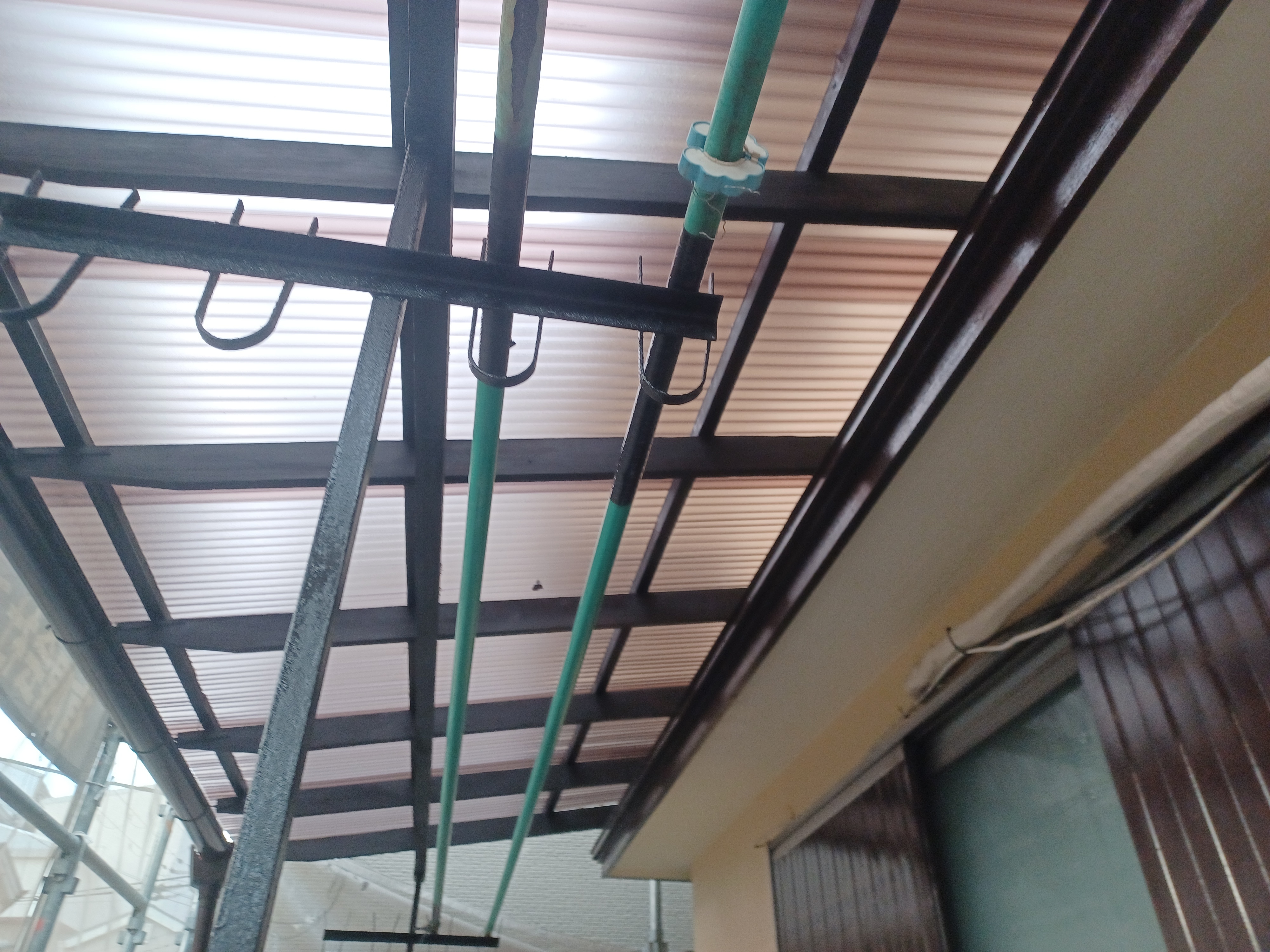 屋根のポリカ波板は張替えが必要でしたが、壁の波トタンは塗装すればまだ使えそうでしたので、塗装でご提案させていただきました。