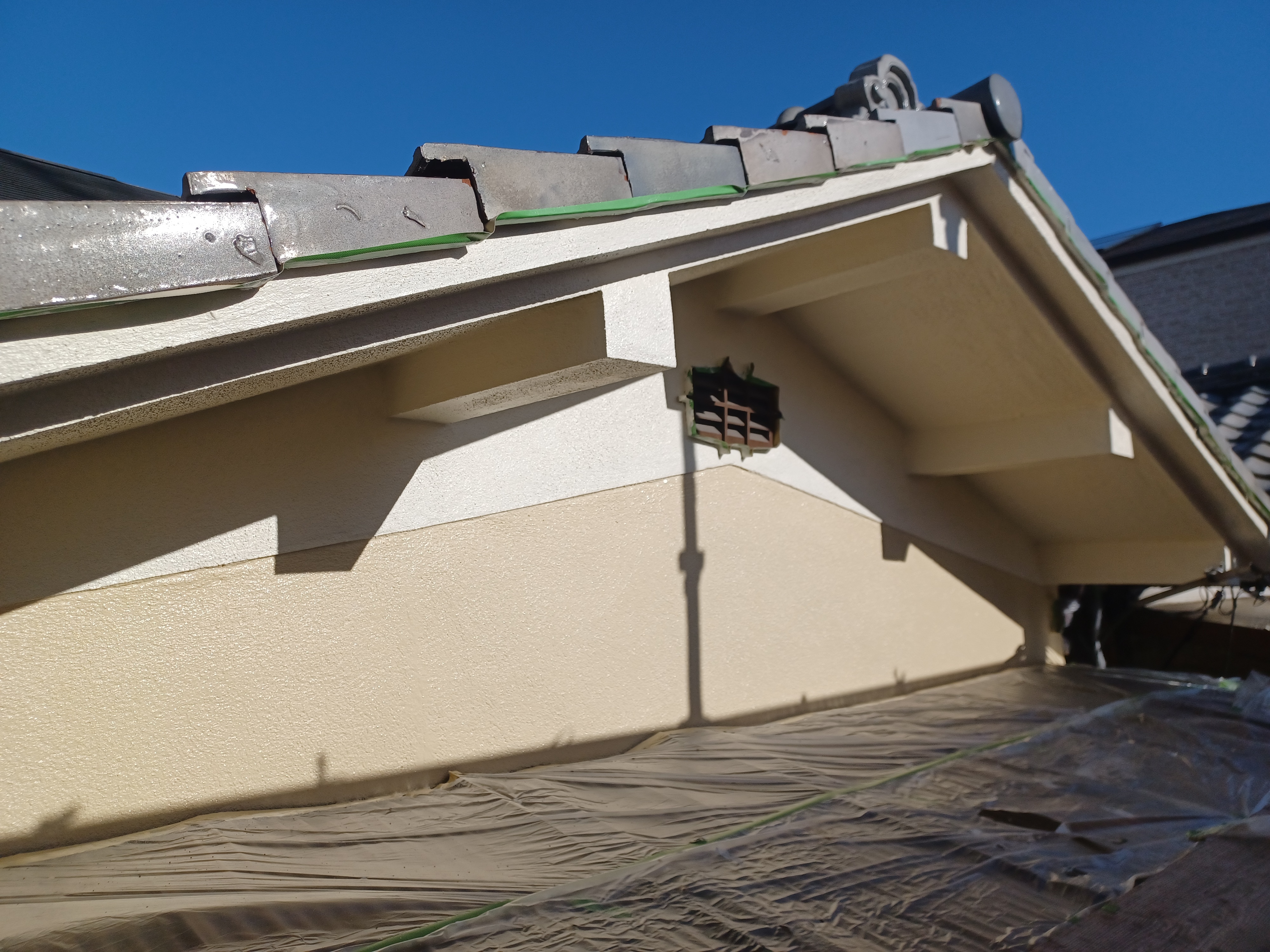 今回は軒天は白で壁はクリーム色と塗り分けさせていただきました。