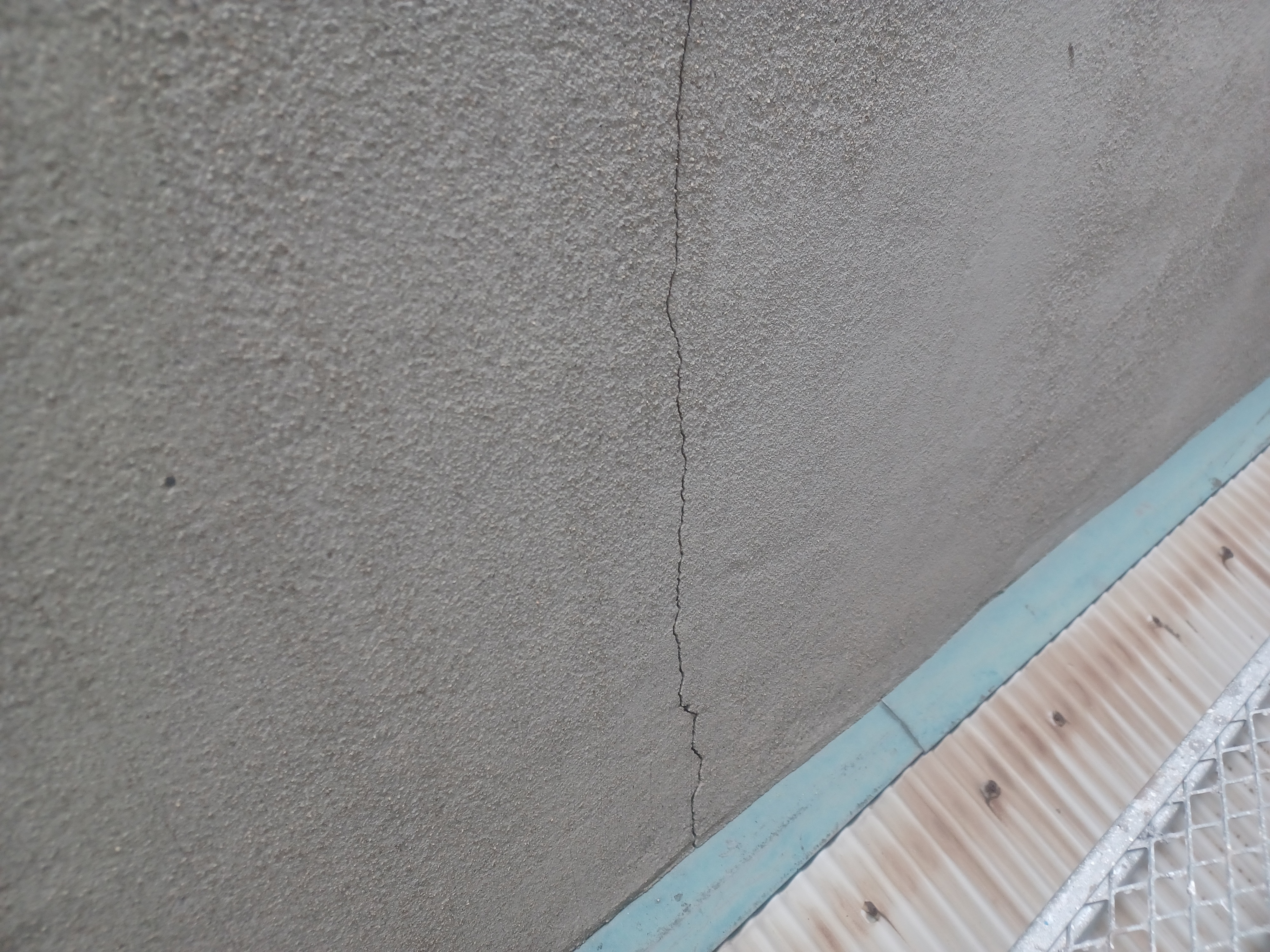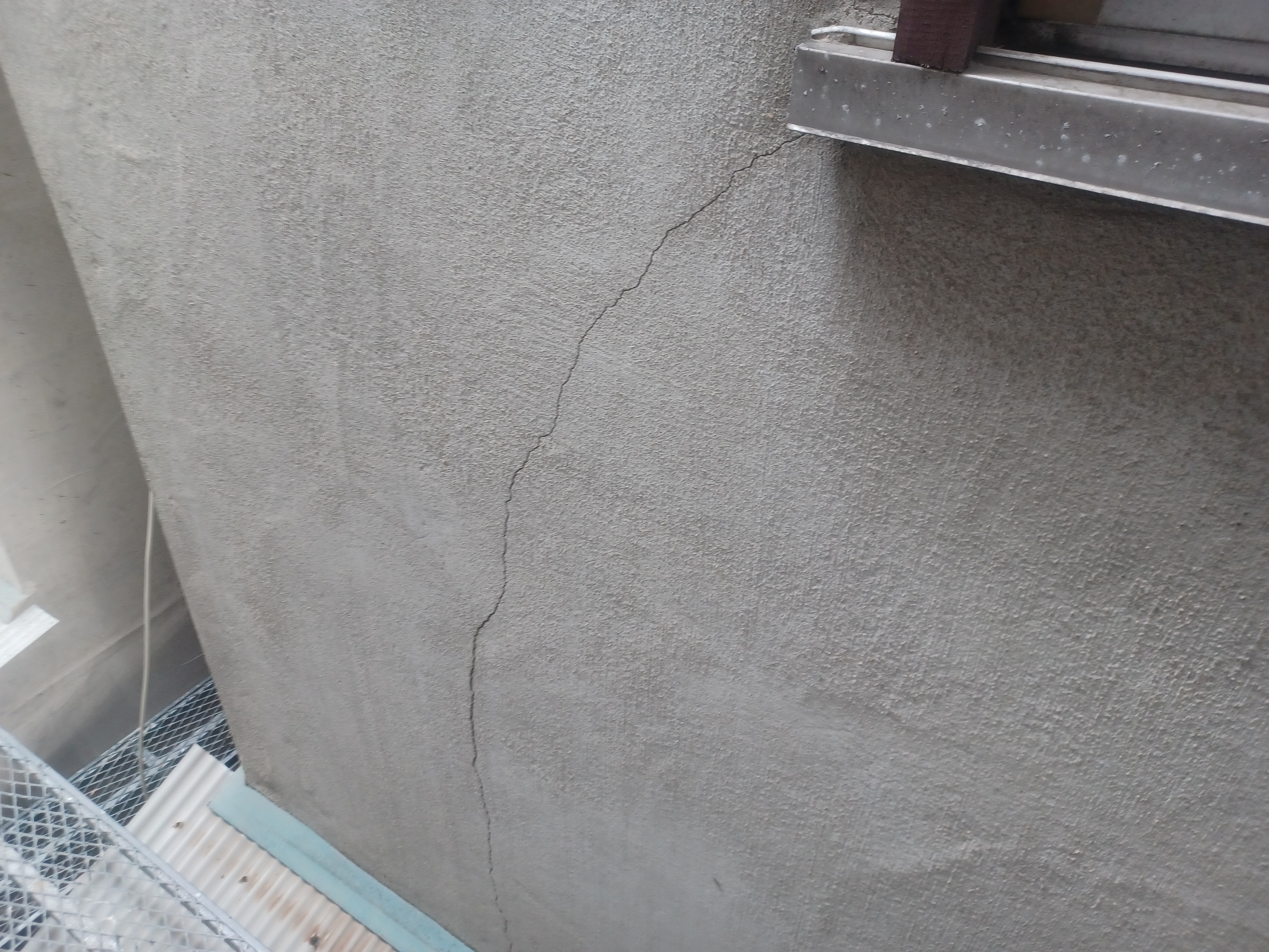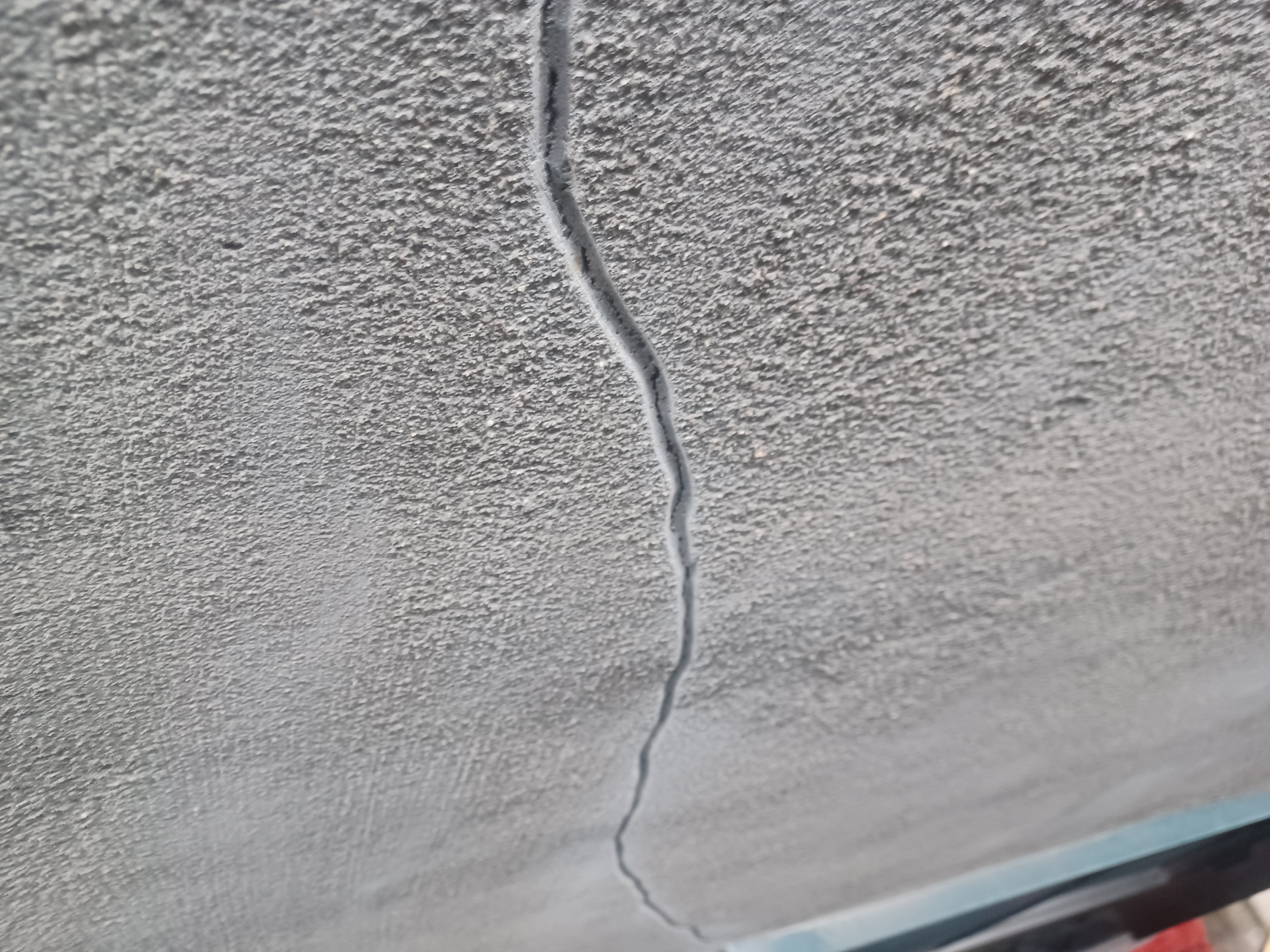 写真のクラックは動いて割れているクラックで、このクラックによくモルタルで補修したりコーキングを打ったりと補修しているのを見かけますが、この上からその補修をした所で直ぐに割れてしまいます。