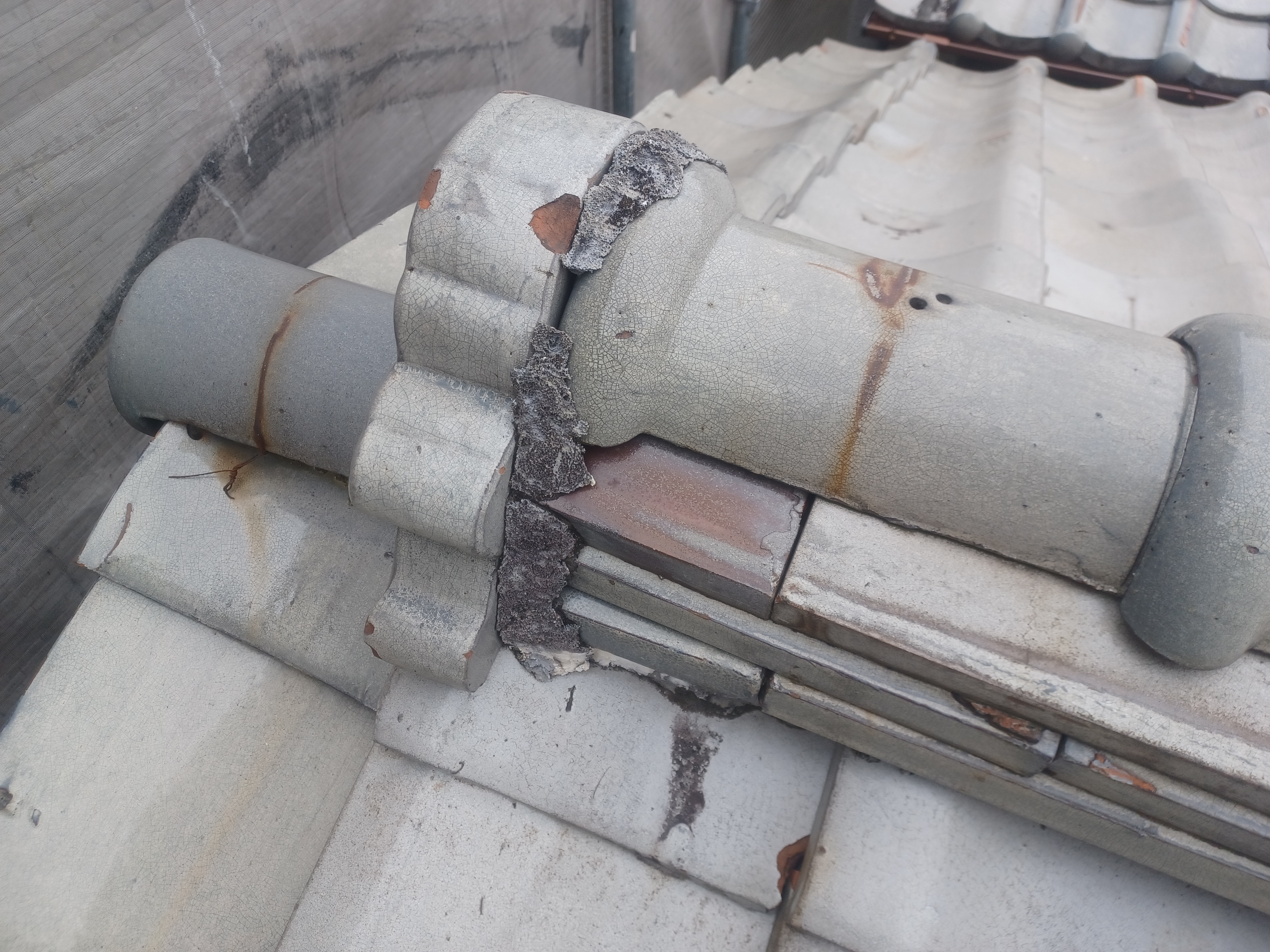 屋根も大半がメンテナンスをされていない所が多いですので、塗装工事で足場を組む訳ですから状態を確認して劣化している漆喰を塗り名をしたり、必要に応じた補修をさせていただいてます。